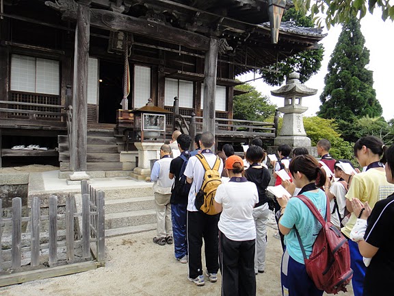 そして無動寺谷を登り明王堂へ。この一時間あまりの急なのぼり坂が一番の難所です。汗だくになりながら、お互いに励ましあい登りきった明王堂でいただいたお茶の美味しいこと。甘露のお茶に心身を癒され、東塔を経てまた西塔の居士林へ戻りました。