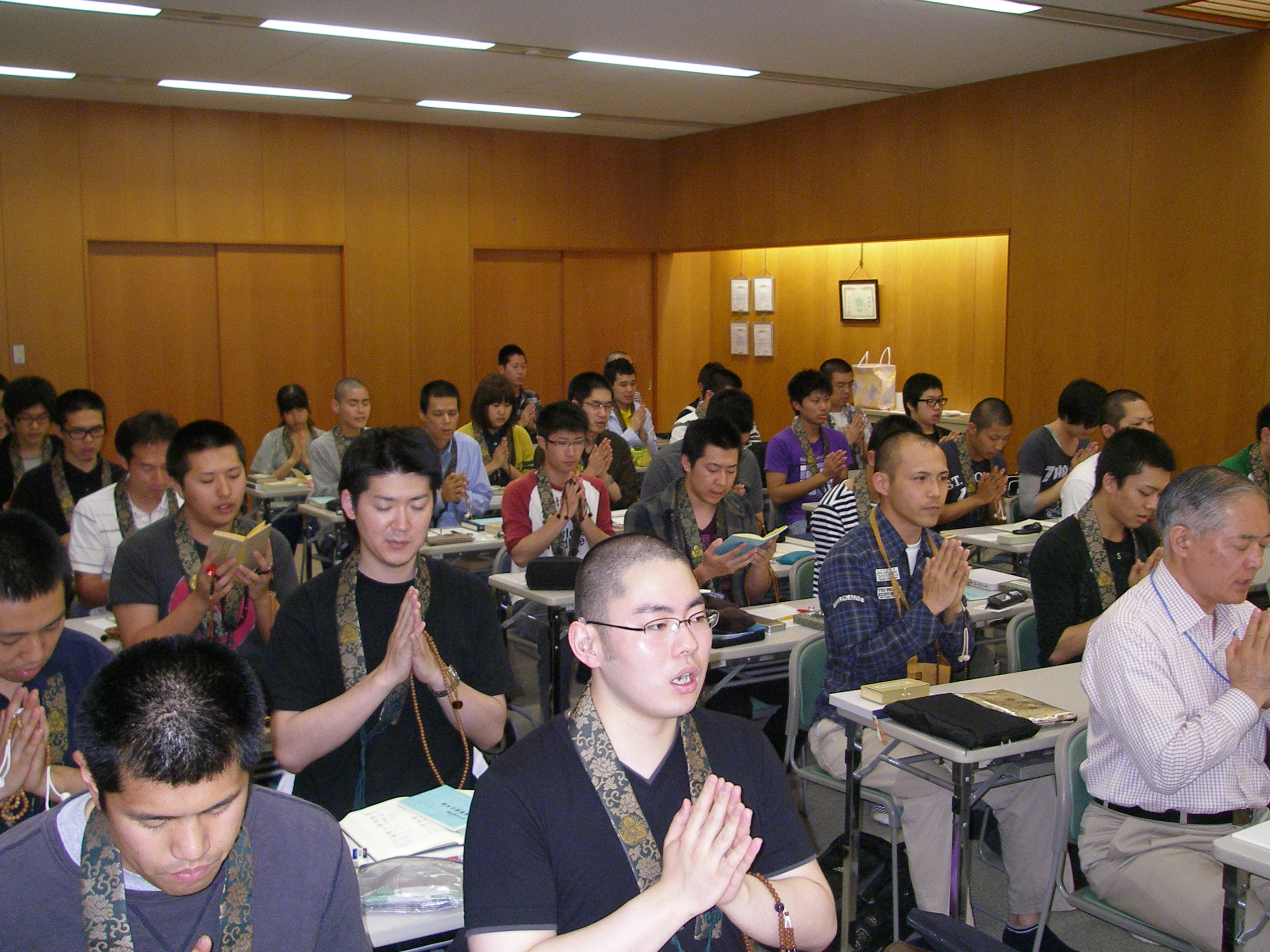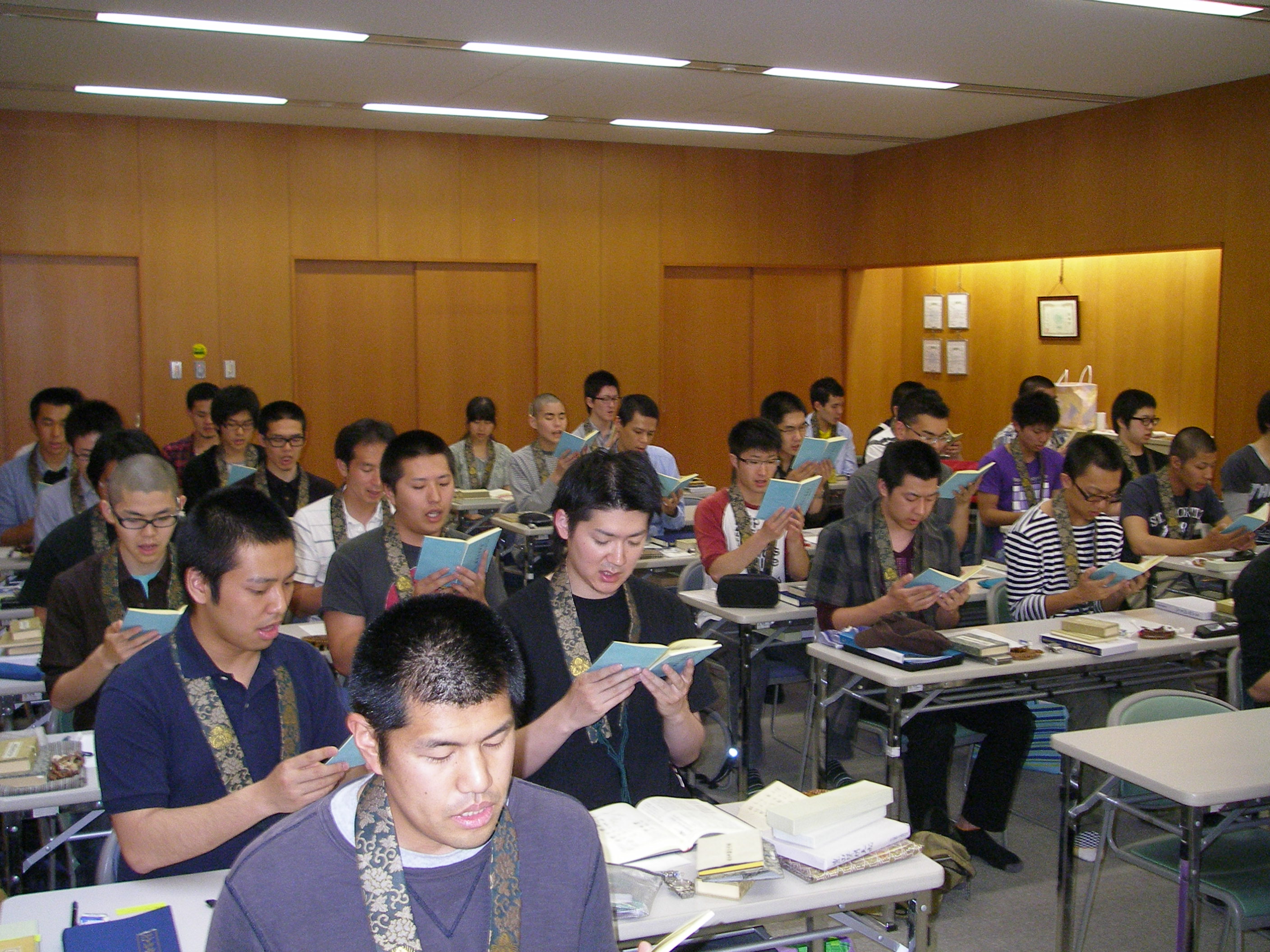 真言豊山学に所属する学生の皆さんは、弘法大師の教学や所依の経典について日夜研究に励んでいます。その他、法儀研究や伝道学や悉曇学など実践面についても、学生の皆さんは日々研鑽をつんでおります。下の写真は正規の授業の他にも「法儀ゼミ」として行われておりますゼミ風景です。学生の皆さんが一生懸命、声明の練習に精を出しているのがおわかりになると思います。