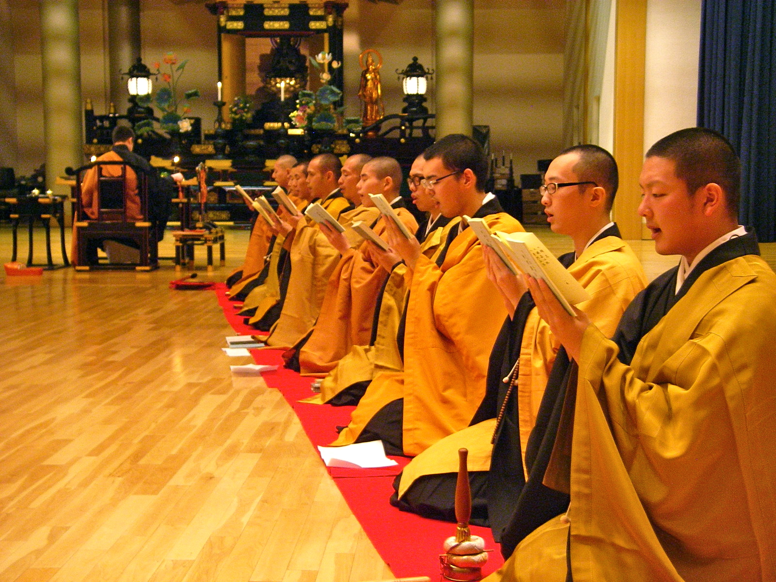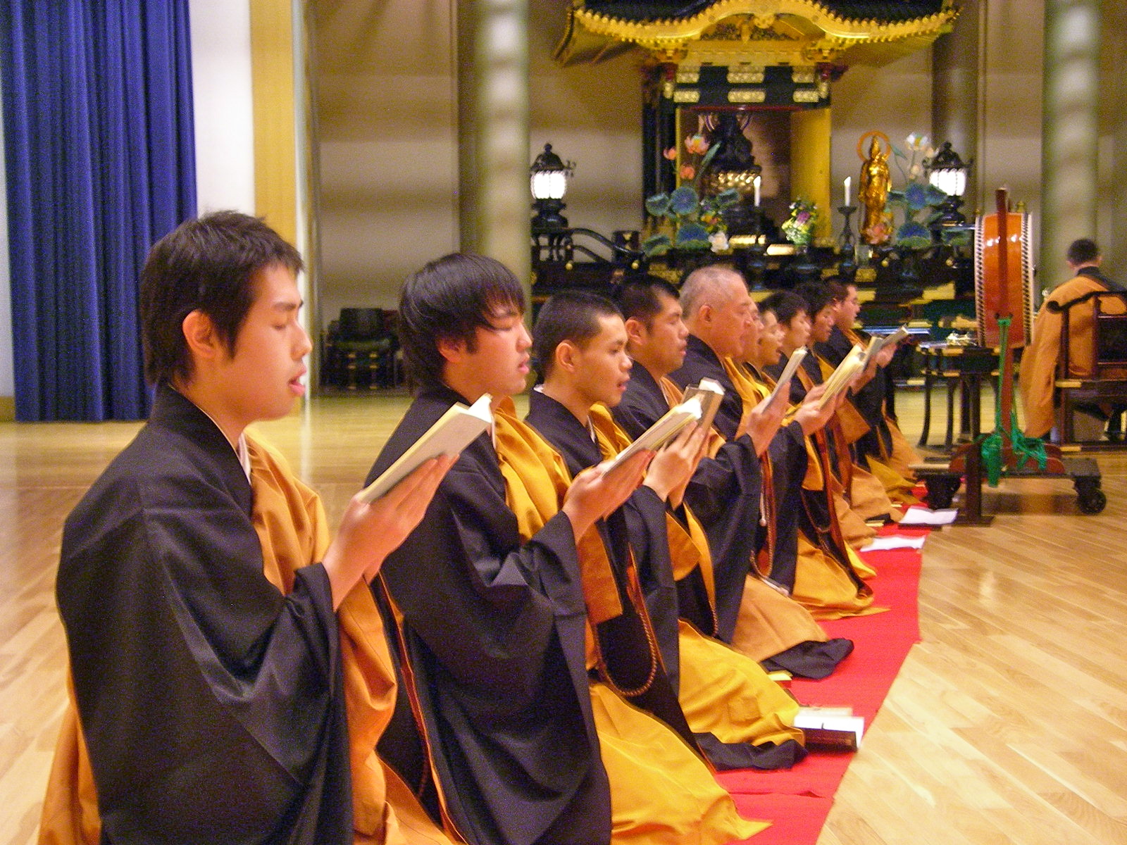 その成果として、さる11月16日のお昼休み、大正大学の礼拝堂にて、真言宗豊山派学生会主催によります「豊山長谷寺朝勤行」が〈水曜礼拝〉の仏教行事として行われました。この「朝勤行」は、真言宗豊山派の総本山である奈良県の長谷寺で毎朝行われている勤行です。