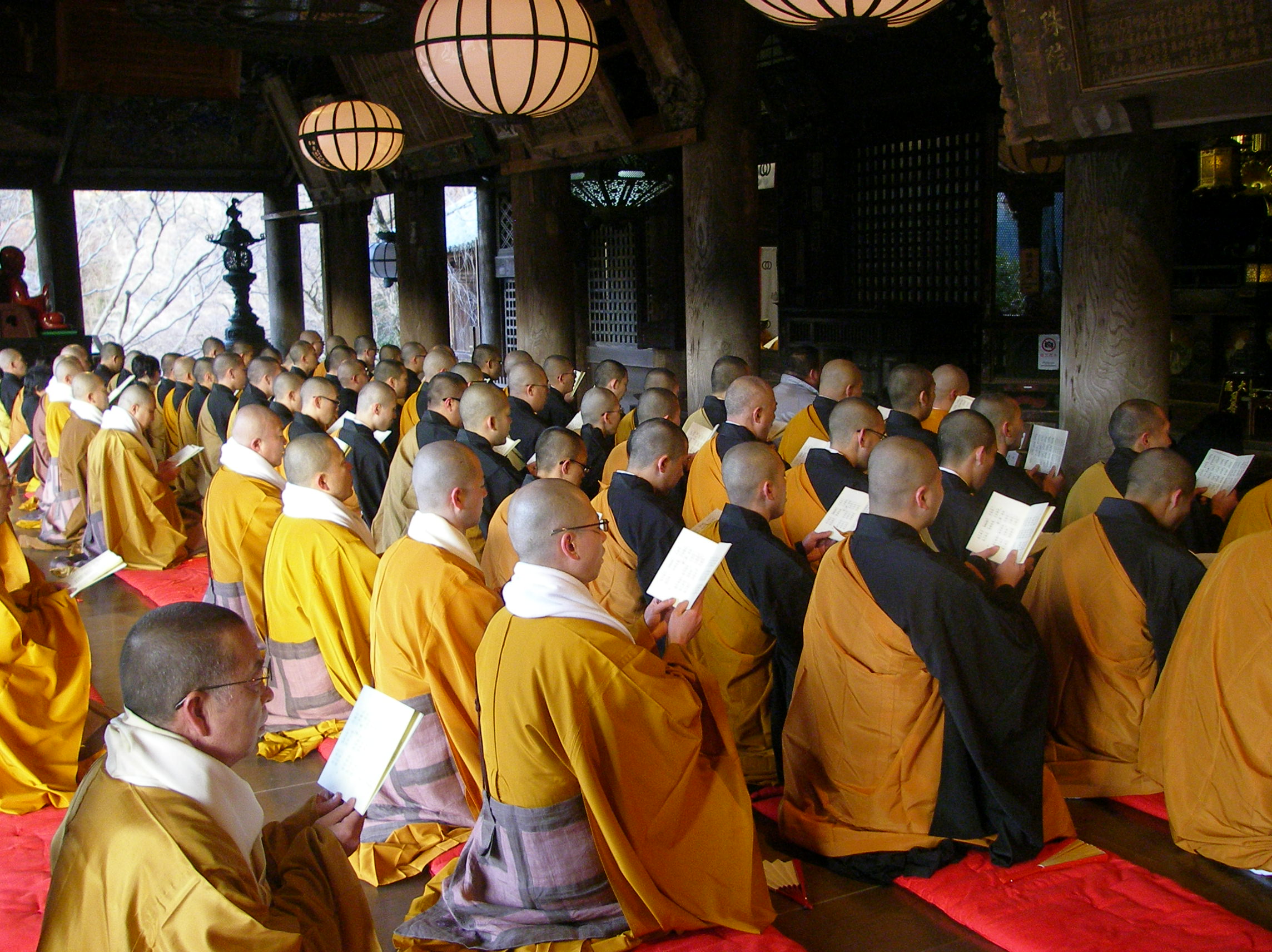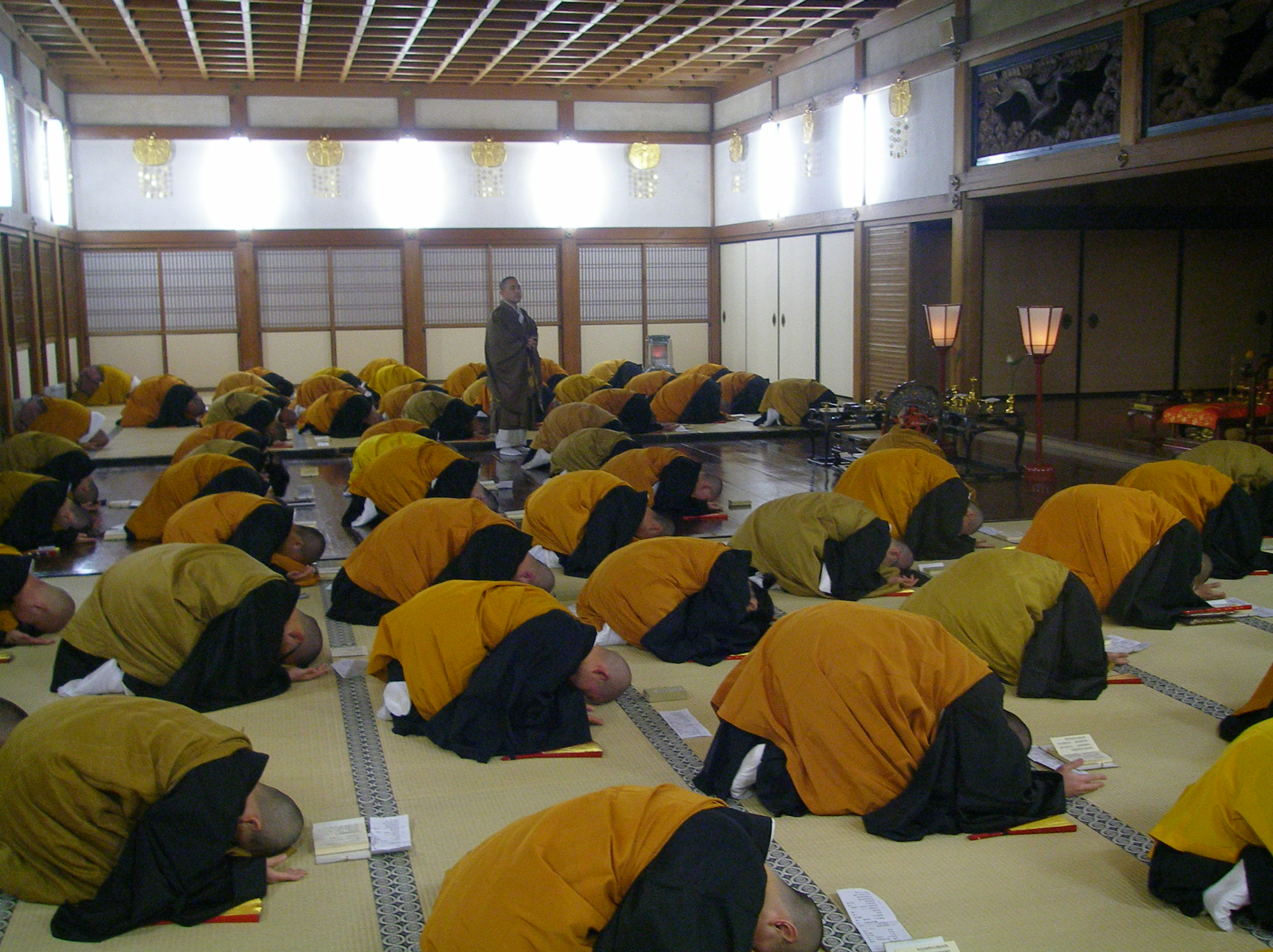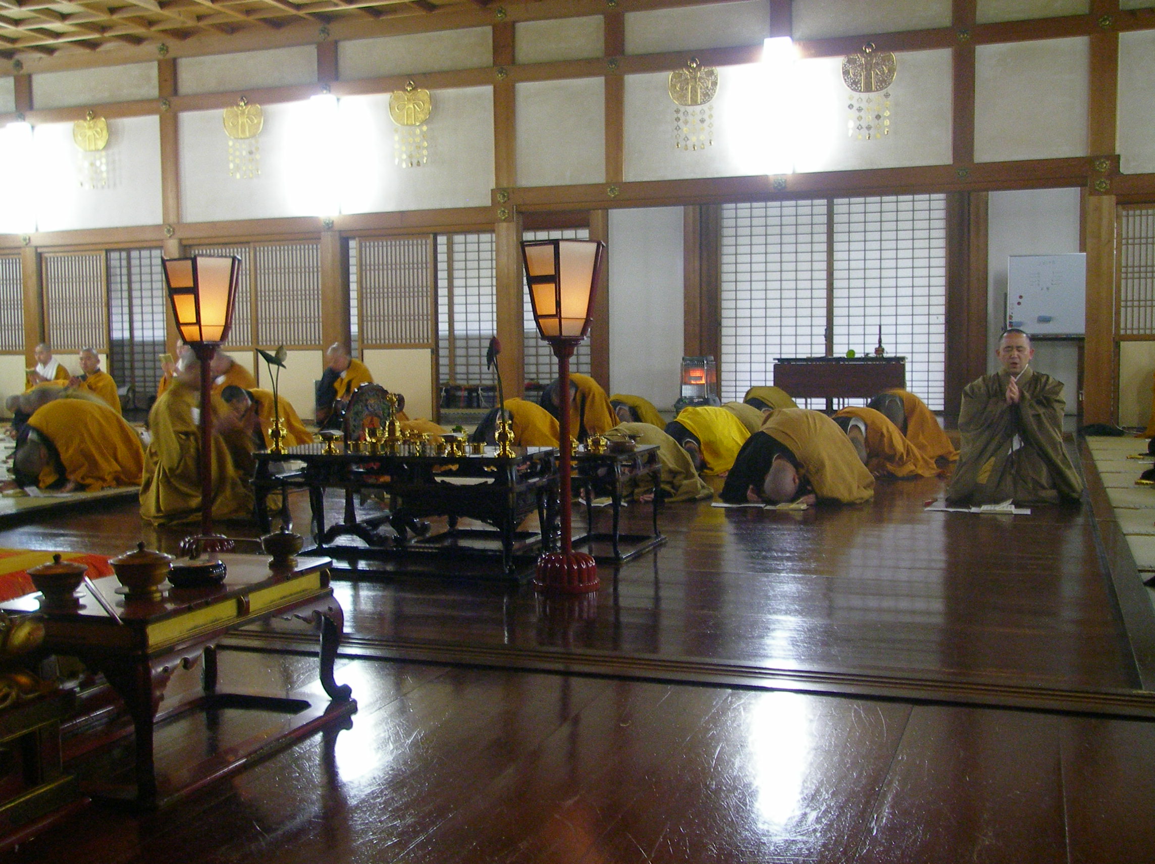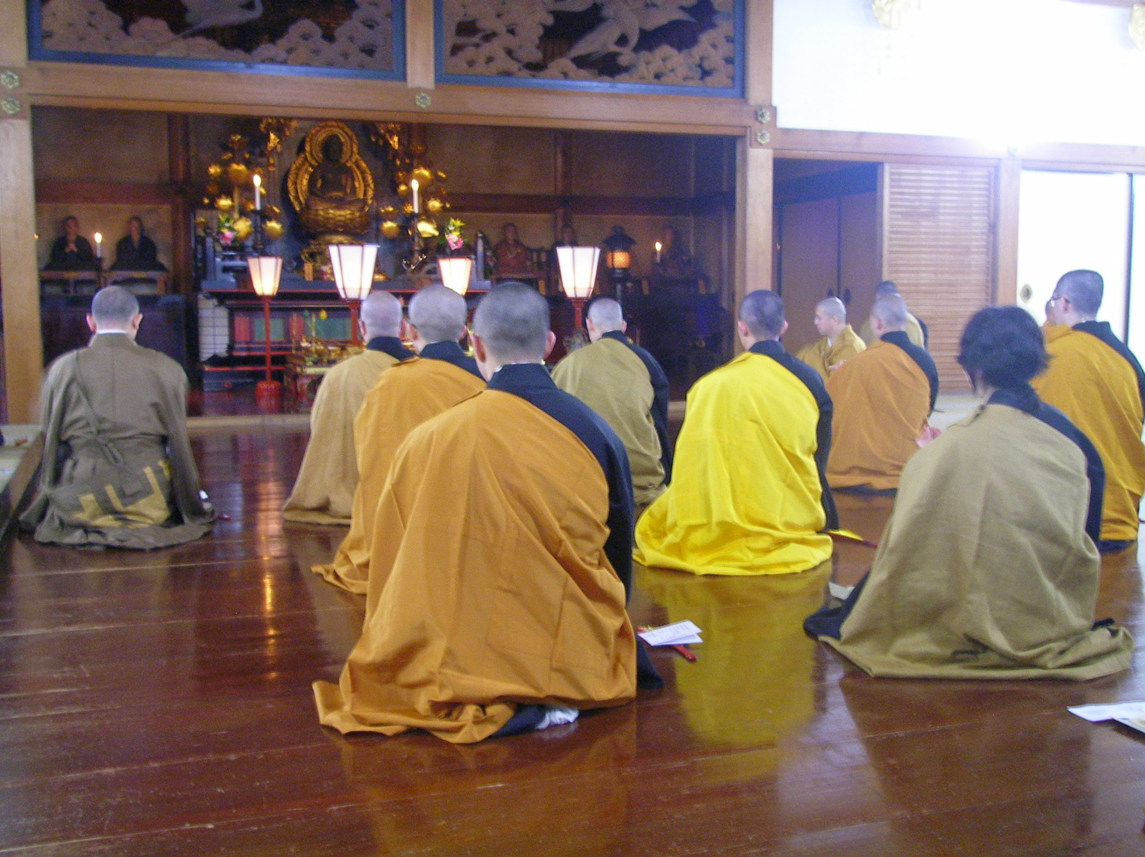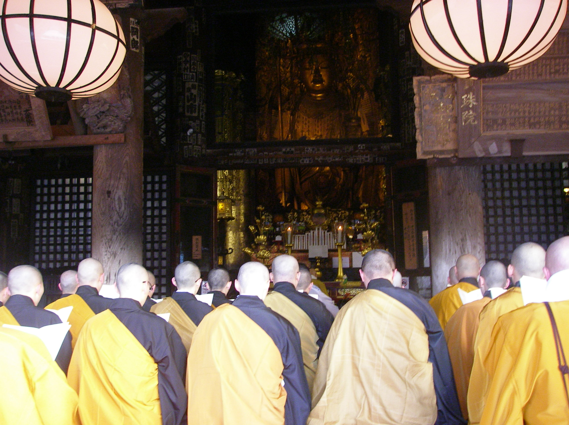 とくに三日目の朝勤行のおり、観音堂ではマイナス4℃ということで、衣から出す手も凍りそうな気がするほどの寒さでした。でも、ご覧のとおり、受講生は一心不乱に『観音経』を読誦しております。このころになると、足のしびれも最高潮ではないかと思われます。