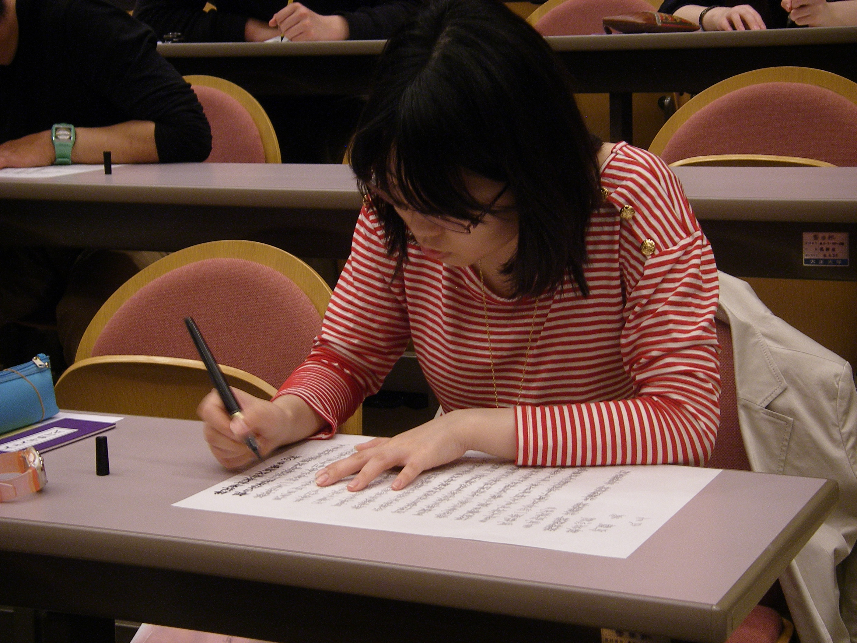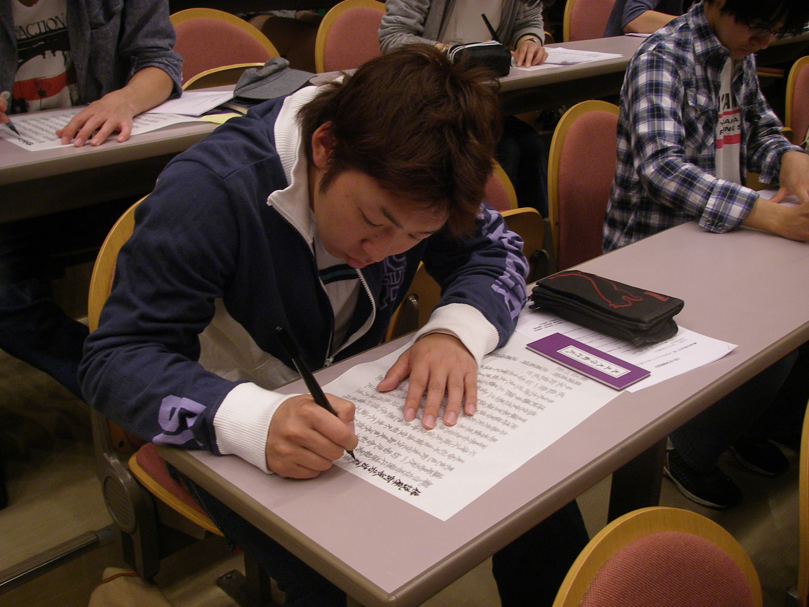 本来は墨をする所から始めますが、授業では時間の関係上筆ペンを用いての写経となりました。
