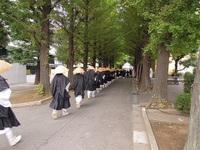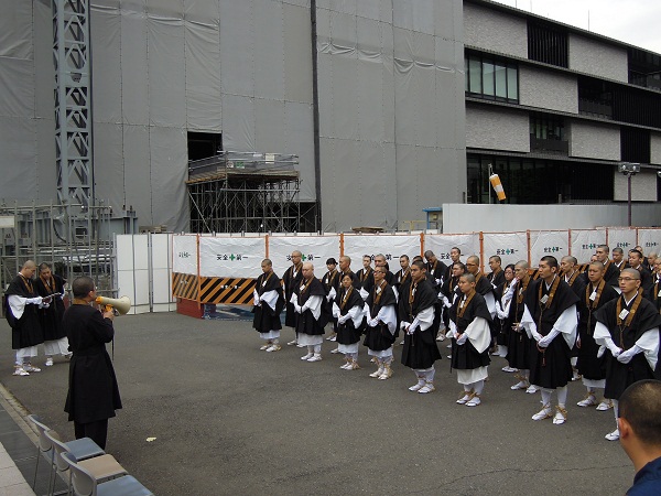 初めにキャンパス内で開会式を行い、私石川が挨拶をさせていただき、その後、念仏行道しながら托鉢を行う池袋駅へ向かいます。