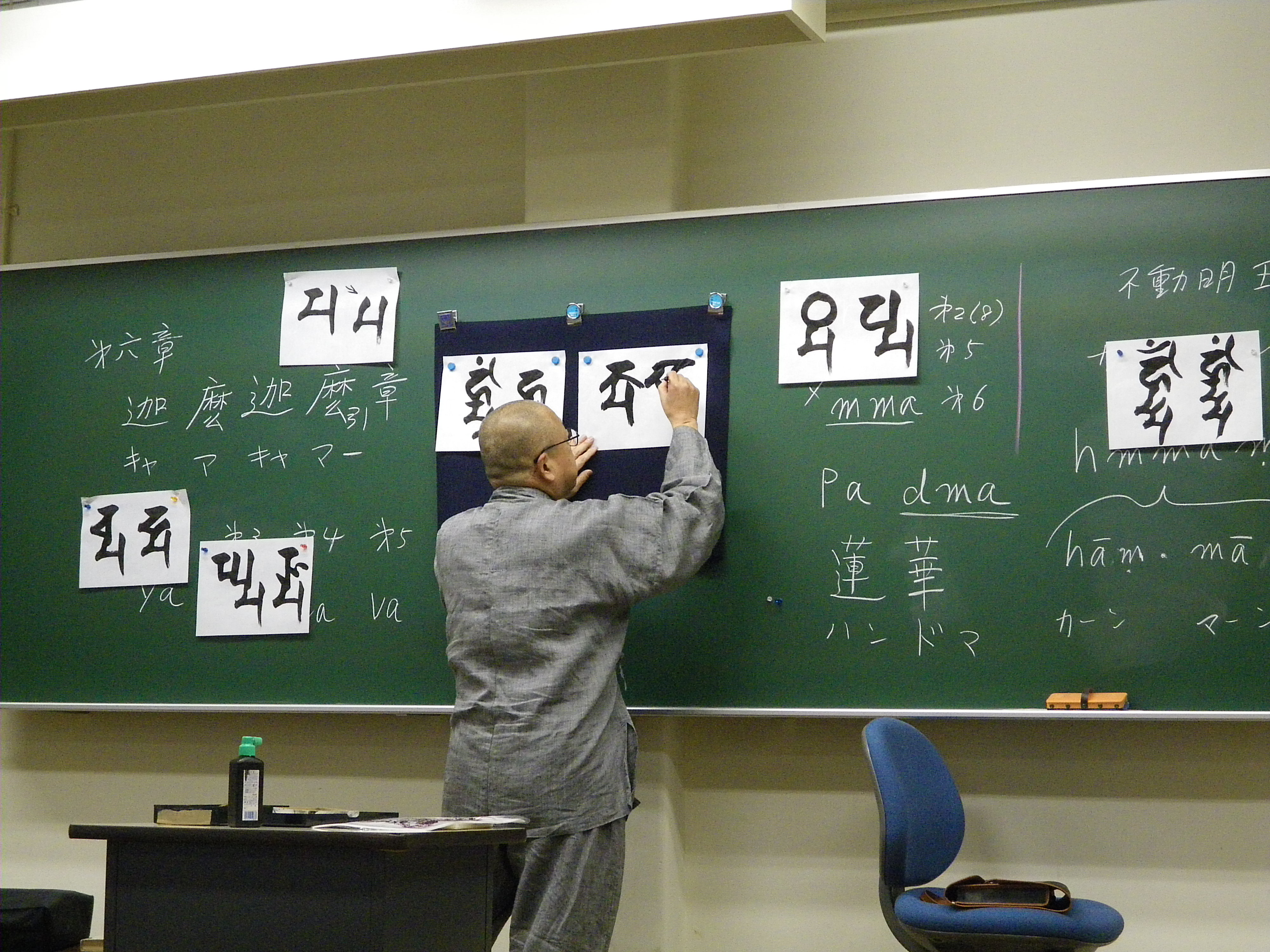 悉曇の授業は仏教学科宗学コース、真言智山、豊山、天台の三宗派の学生が主に三年生(含編入生)の時に受講する講義です。