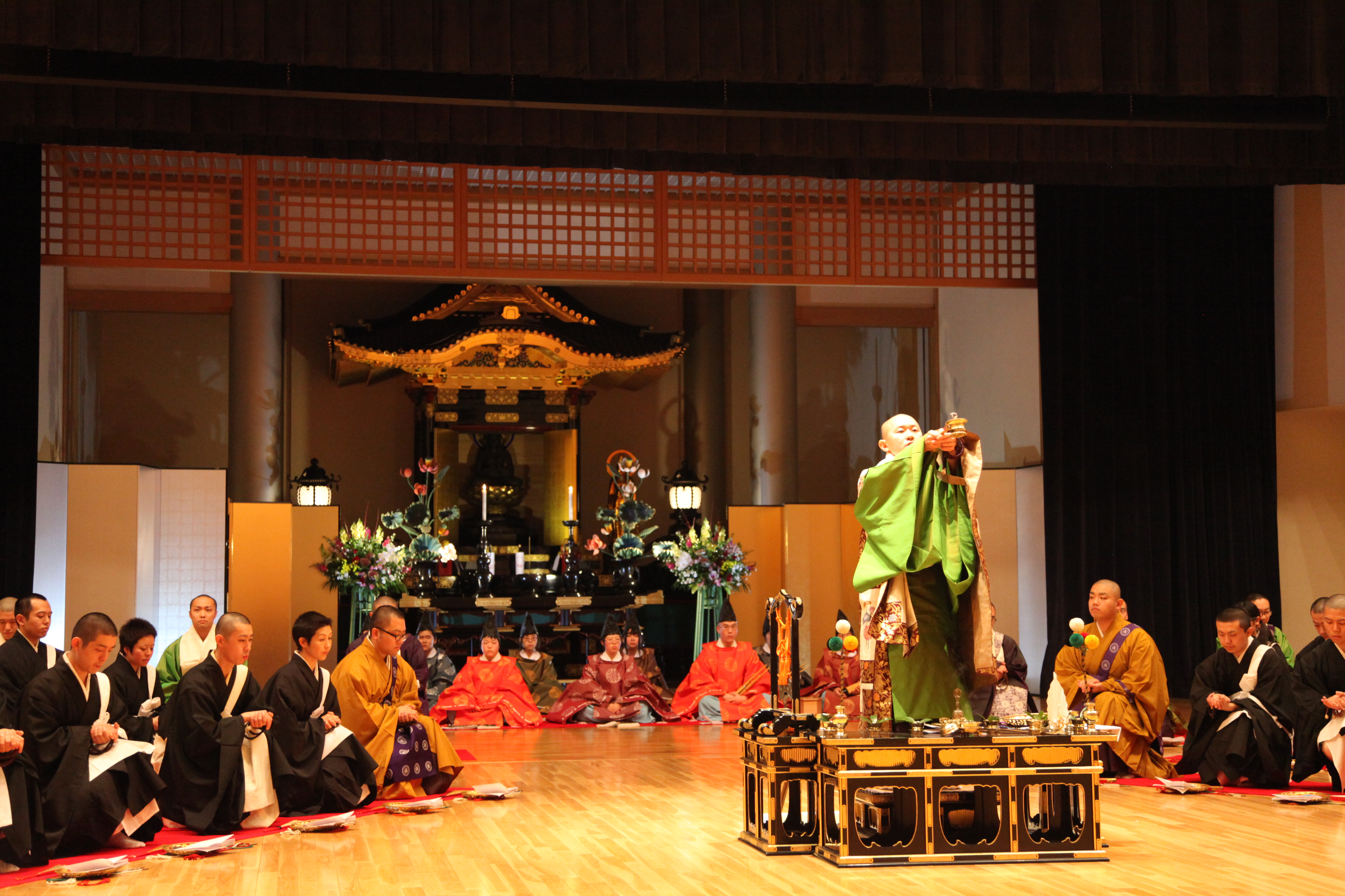 仏教学科の宗学コースの学生は週二回ある「法儀研究」の講義で、仏教儀式・法要の所作、声明や経典の唱え方について実習しています。この公演は、天台宗の学生が中心となり、日頃の研鑽の成果をお披露目する機会です。