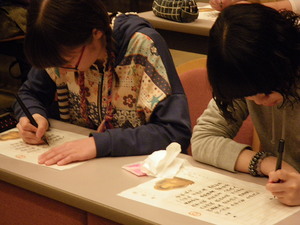 二回目の授業となる17日の講義では、写経の体験授業が行われました。