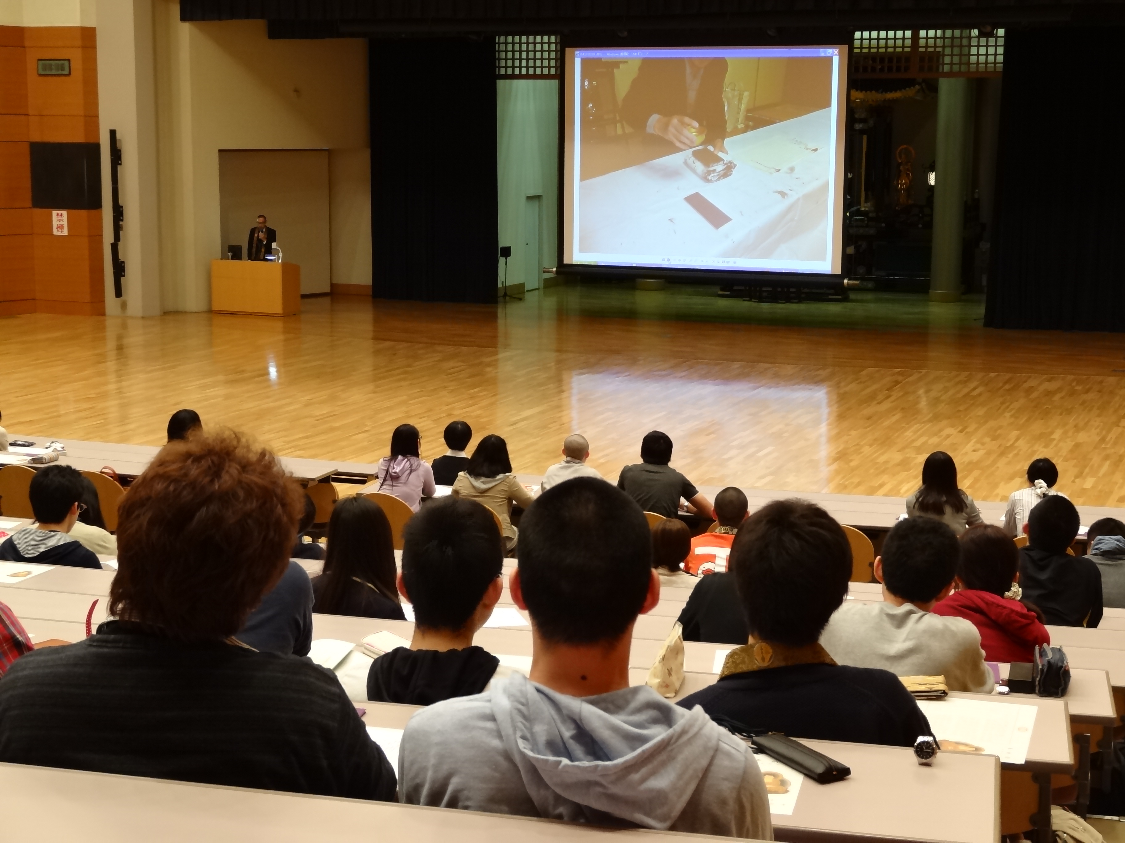 大学入門1-Ⅱは1年生が受ける授業で、大学入門という講座名が示すように正規の授業であると同時に、大正大学の設立四宗派の先生や関係者の方が講師となって、様々な仏教に関連する授業を行い、学生さんに仏教をより理解していただく事が一つの目的となっています。