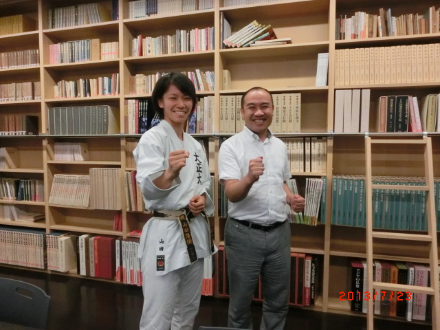 大正大学での空手と学問のことについて問われると、空手は朝6時45分から9時までの2時間少しの練習になるが、自分にはこのスケジュールが良く合うと思っている。