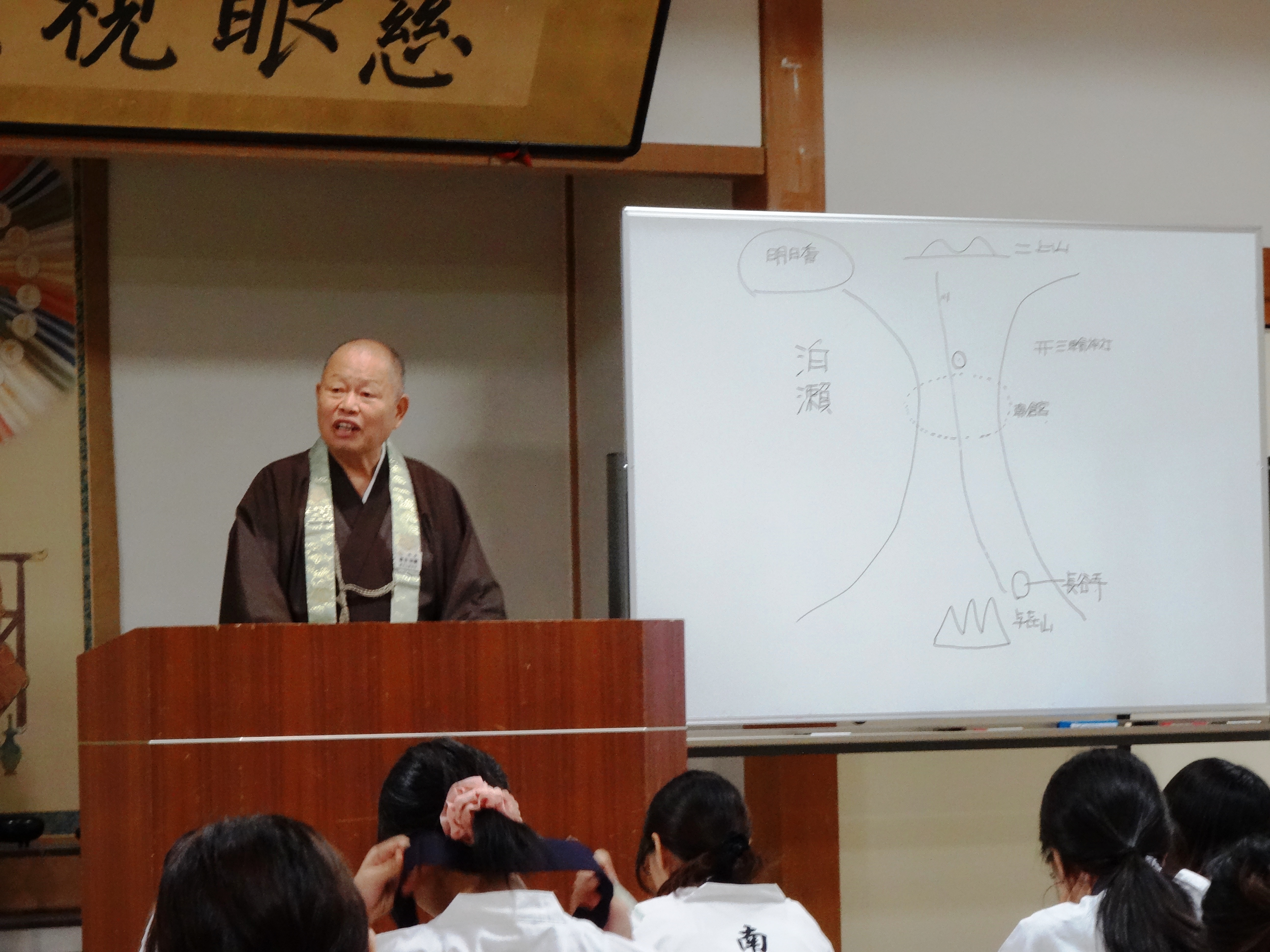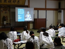 初日・二日目は、この研修道場の担当教員である小山先生の講義が中心となります。『観音経』の講義などが行われました。