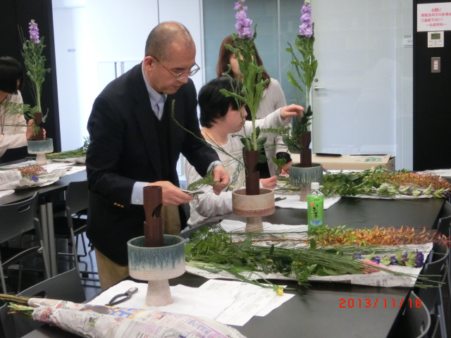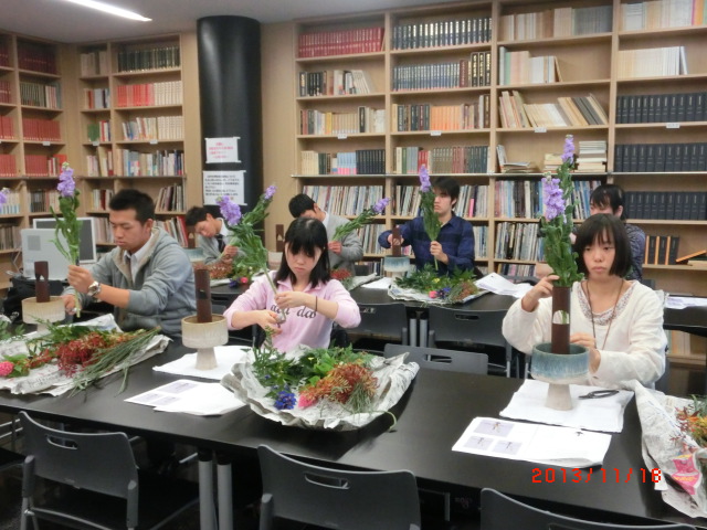 辻井先生には春学期にも「いけばなで自然と命の大切さを学ぶ」という大変興味深い講義をして頂きました。その時の様子は6月19日にUPしたブログに掲載しております。そちらも合わせてご覧ください。