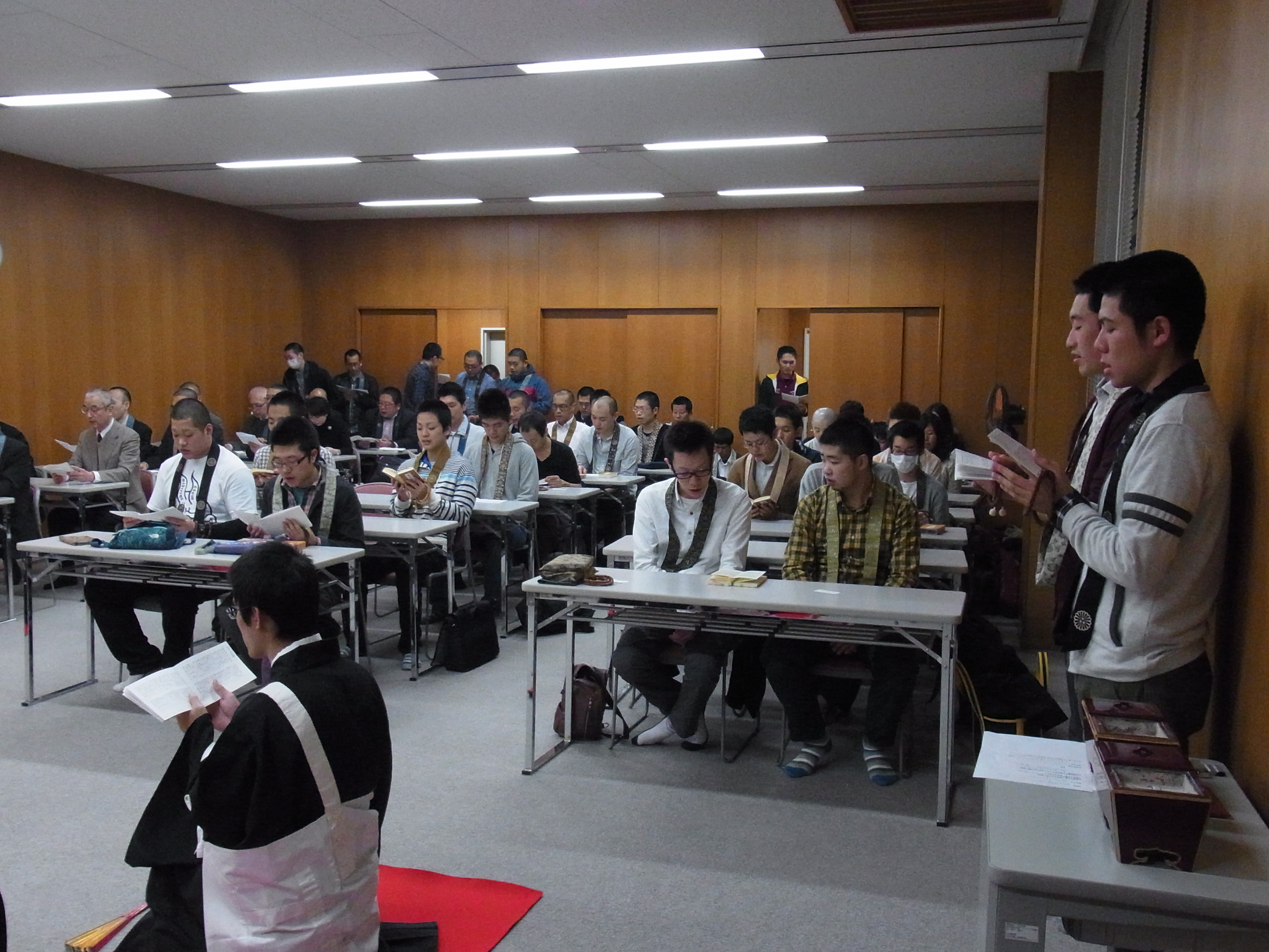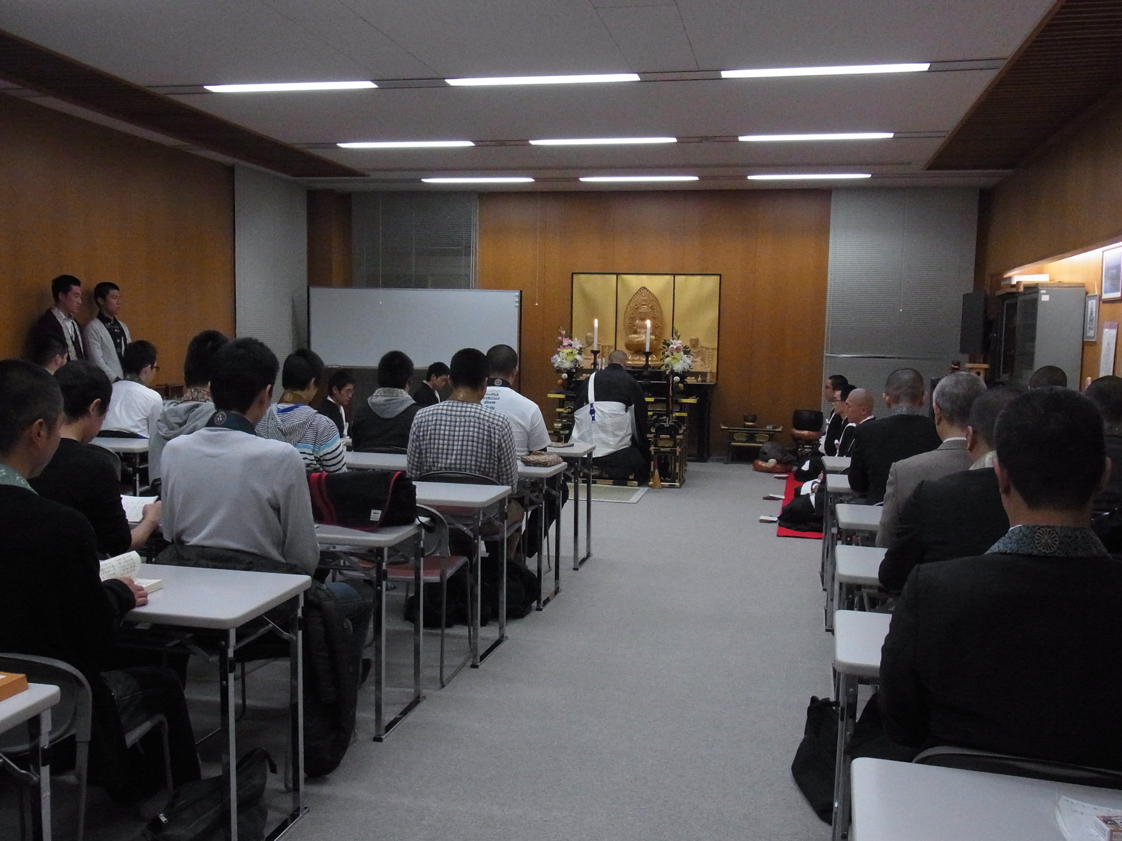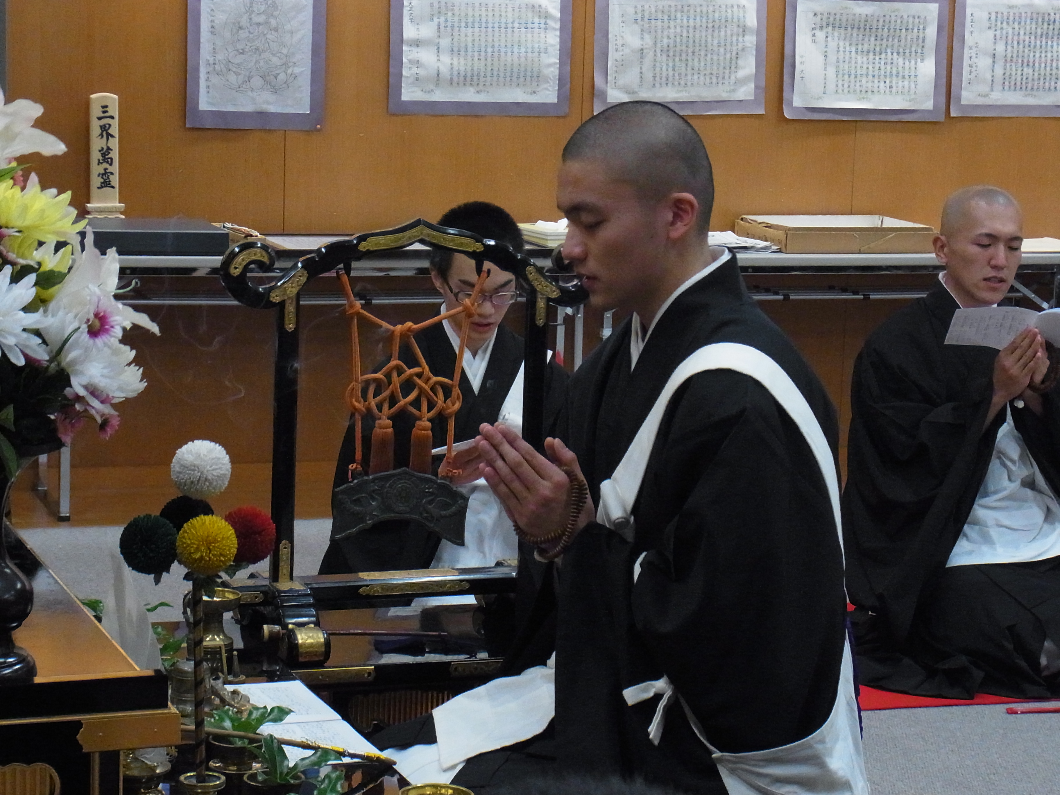 また11月20日(水)に、午後六時より台友会主催による霜月会が行われました。霜月会とは、天台大師智顗のご命日(11月24日)にちなんだ天台宗の行事です。台友会では毎年11月に霜月会を開き、天台大師のご恩に感謝するために「天台大師和讃」を教職員・学生などでお唱えします。