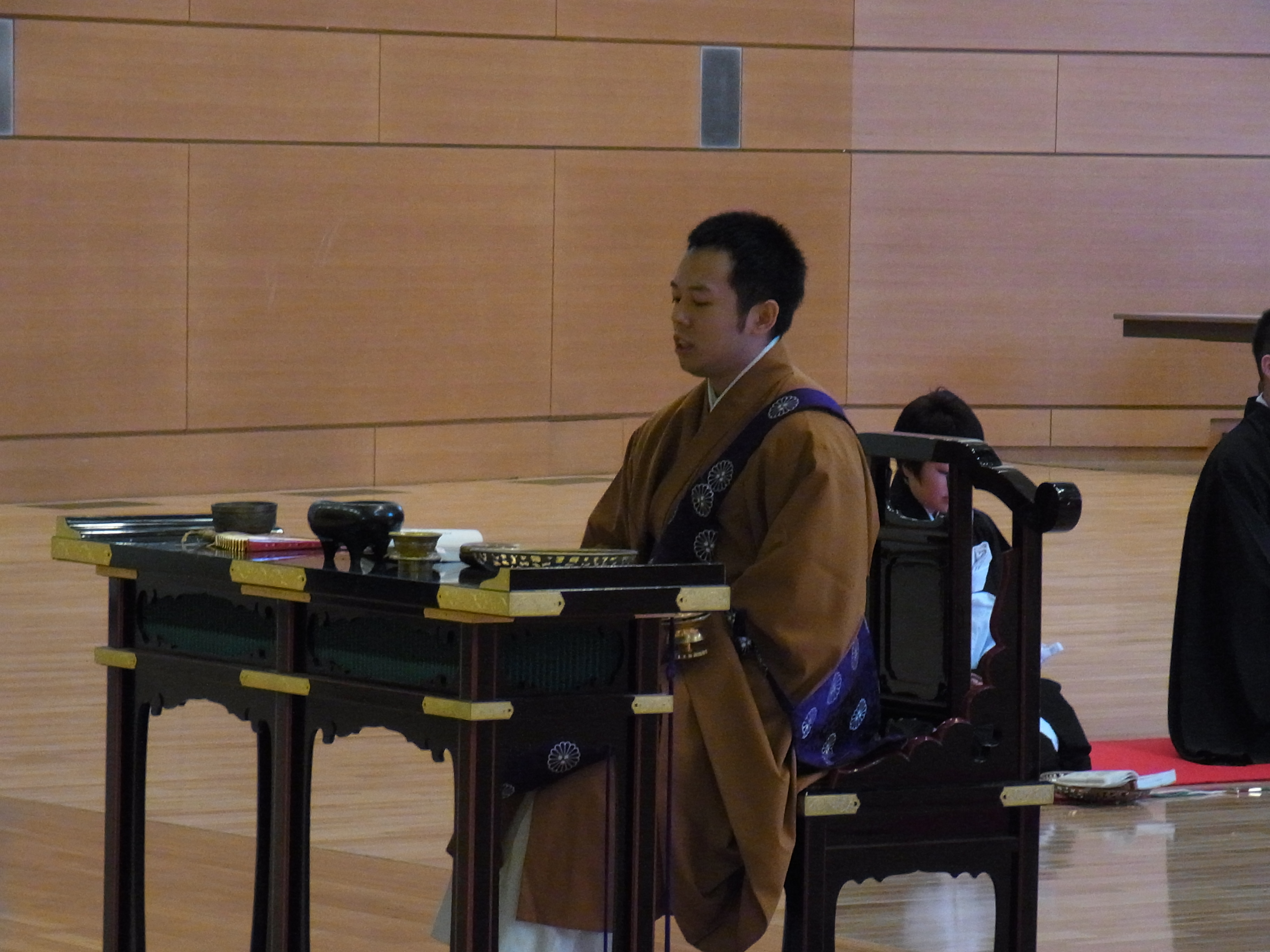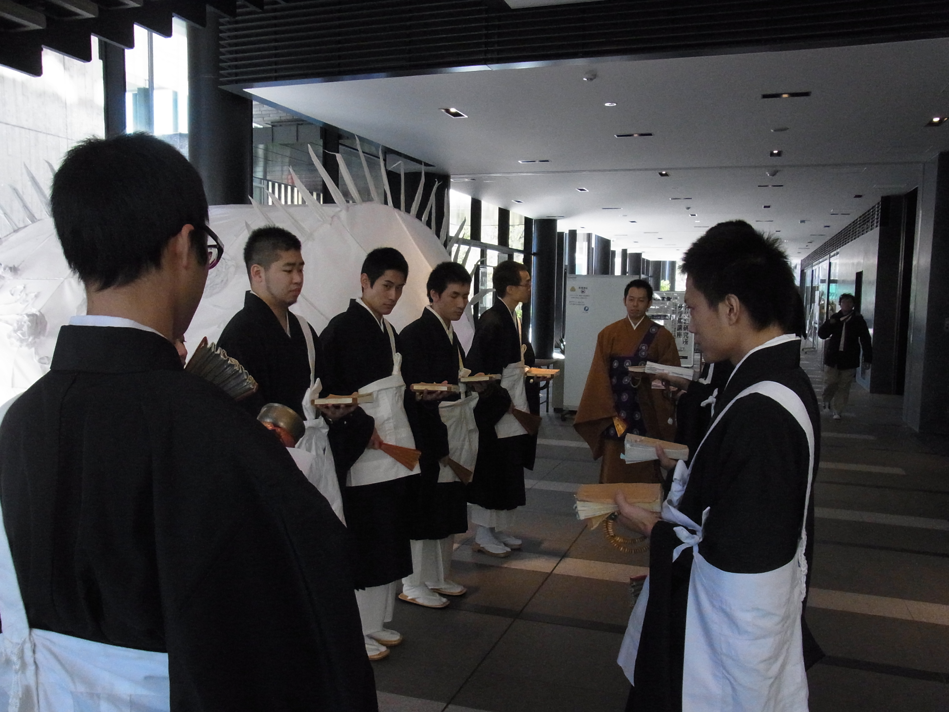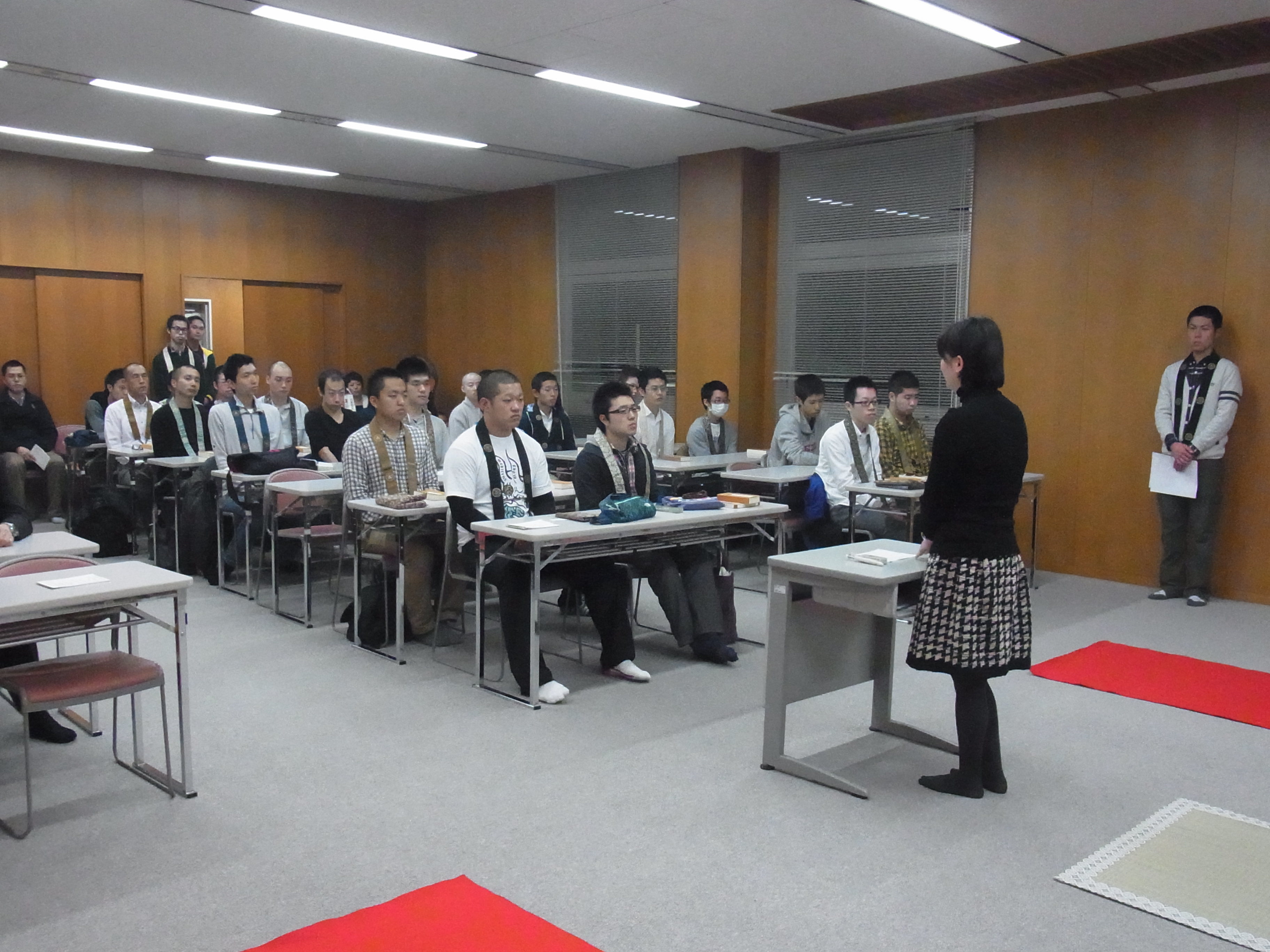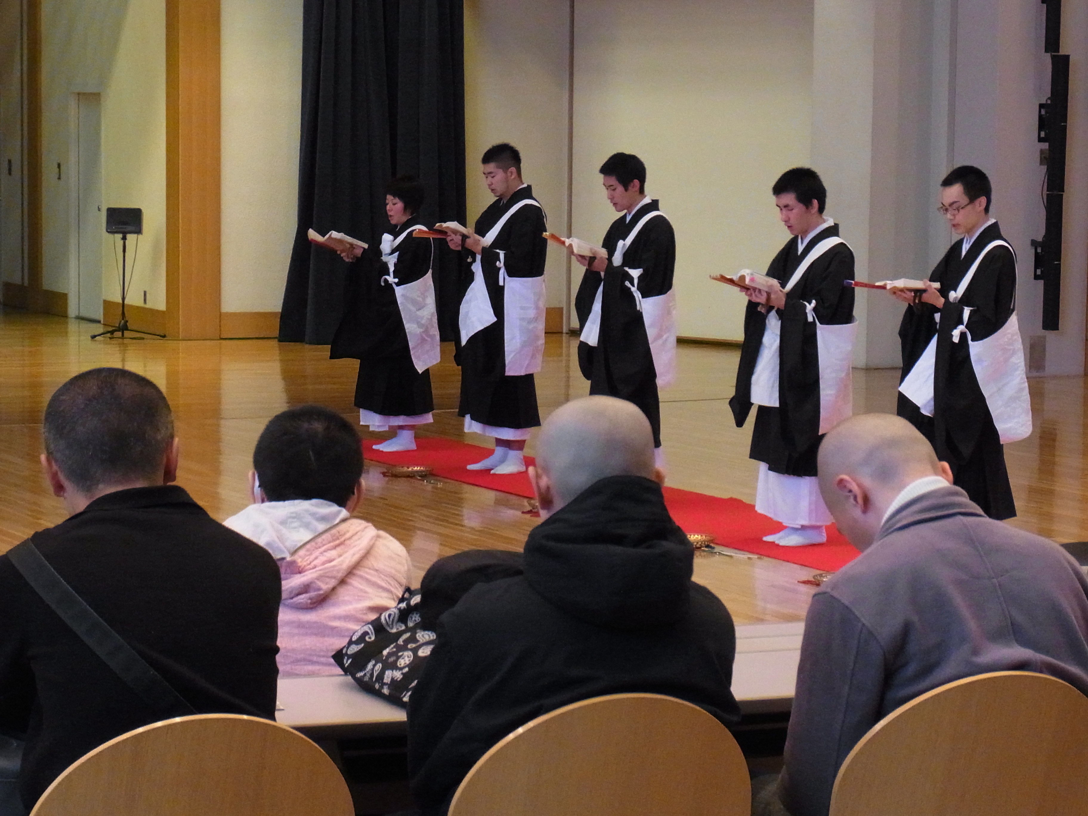 また11月20日(水)に、午後六時より台友会主催による霜月会が行われました。霜月会とは、天台大師智顗のご命日(11月24日)にちなんだ天台宗の行事です。台友会では毎年11月に霜月会を開き、天台大師のご恩に感謝するために「天台大師和讃」を教職員・学生などでお唱えします。