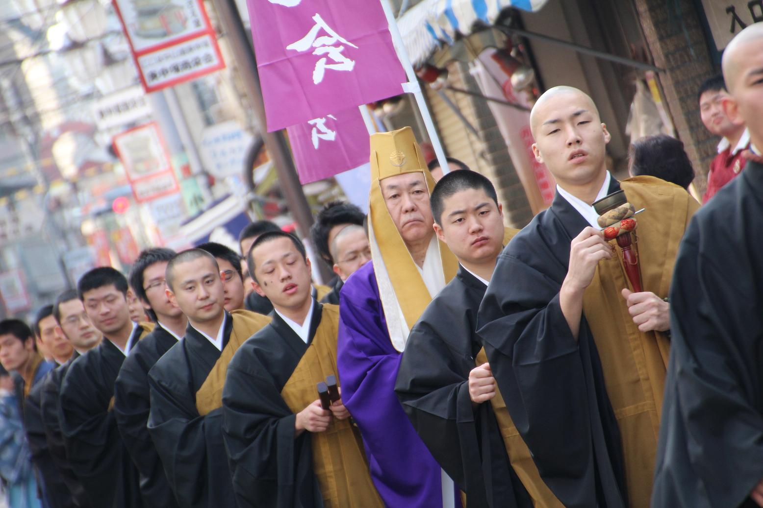 さて、近年の成道会では恒例となっていた、巣鴨眞性寺から大学までのお練りは、巣鴨地蔵通り商店街が4の日縁日ということで、短縮したかたちで行われました。
