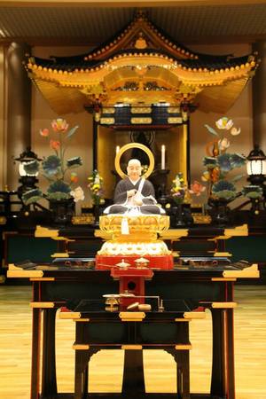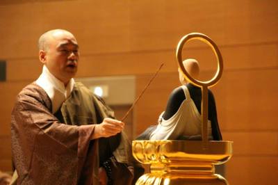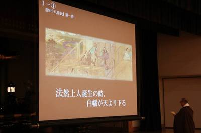 プロジェクターにて『法然上人行状絵図(四十八巻伝)』等の影像を投射しながら、法然上人の御生涯を讃歎する新しい法要です。
