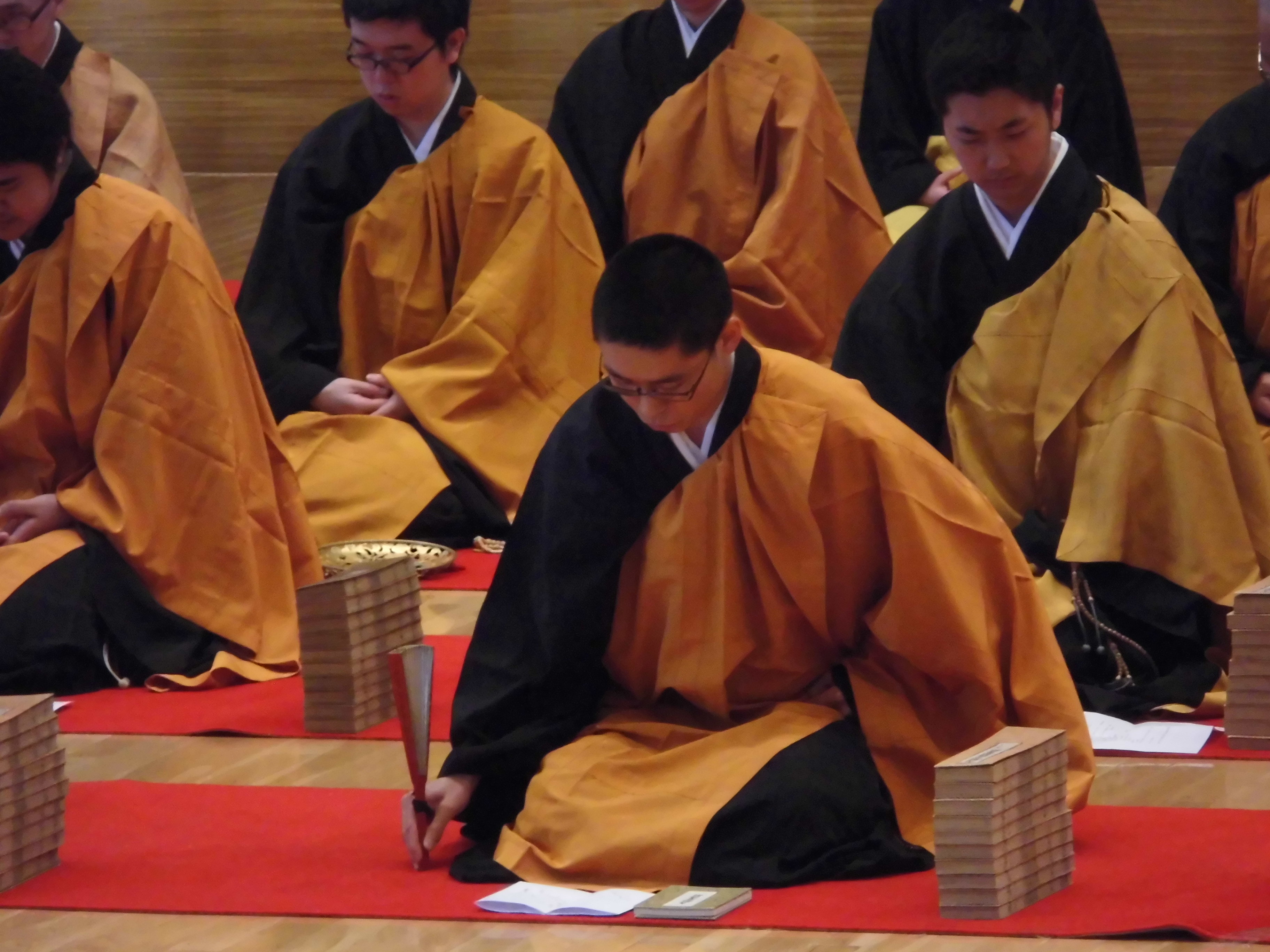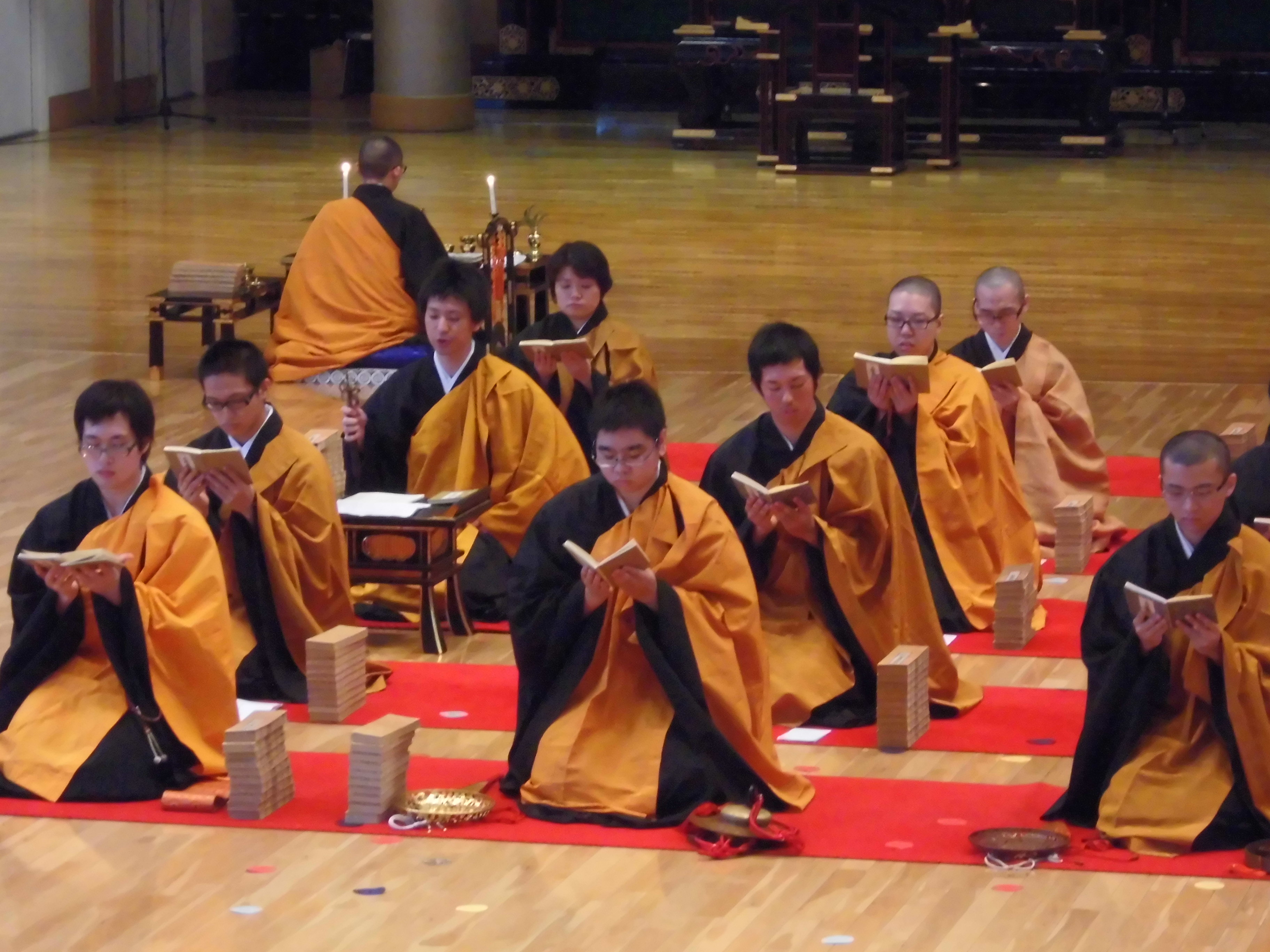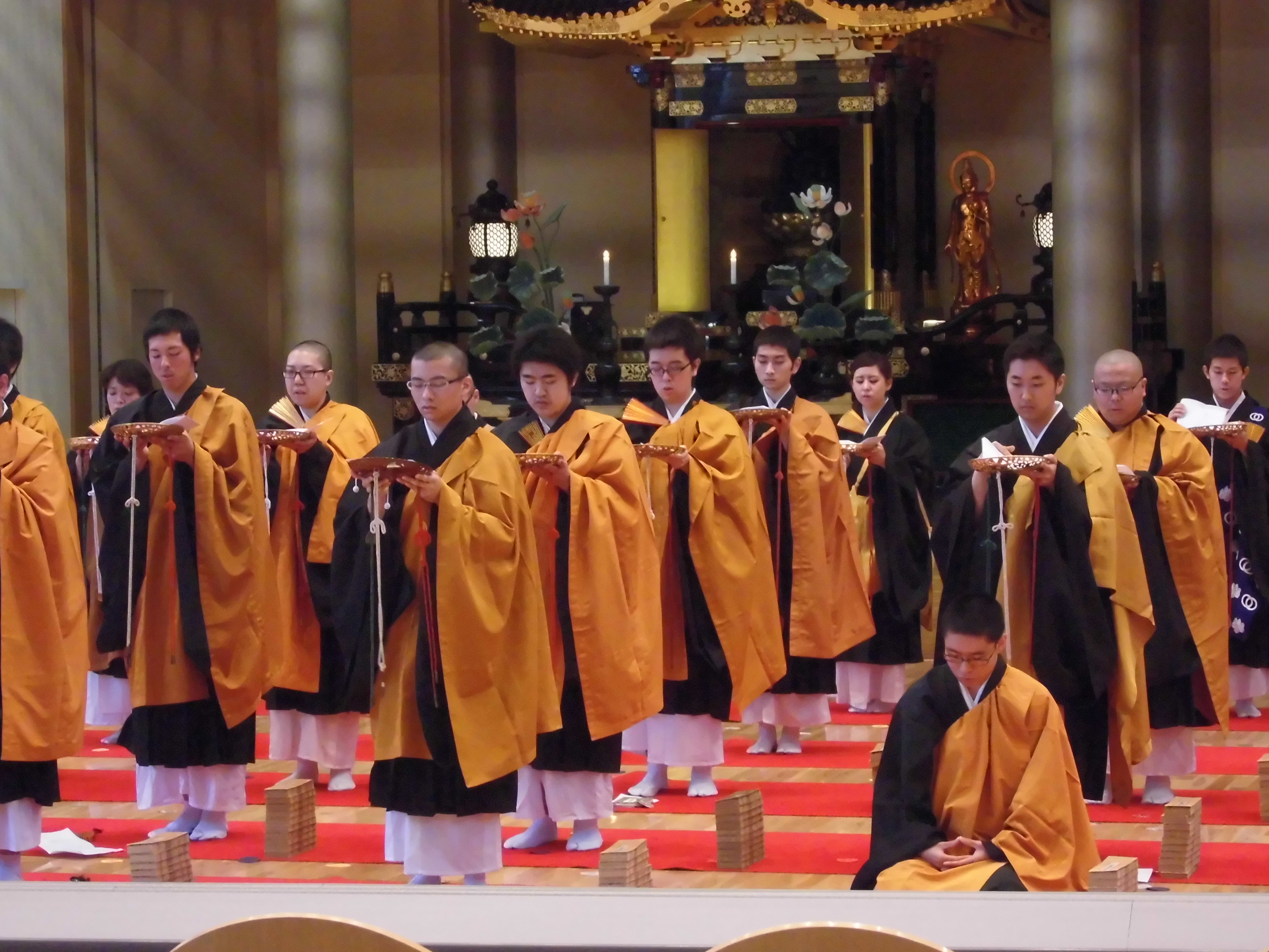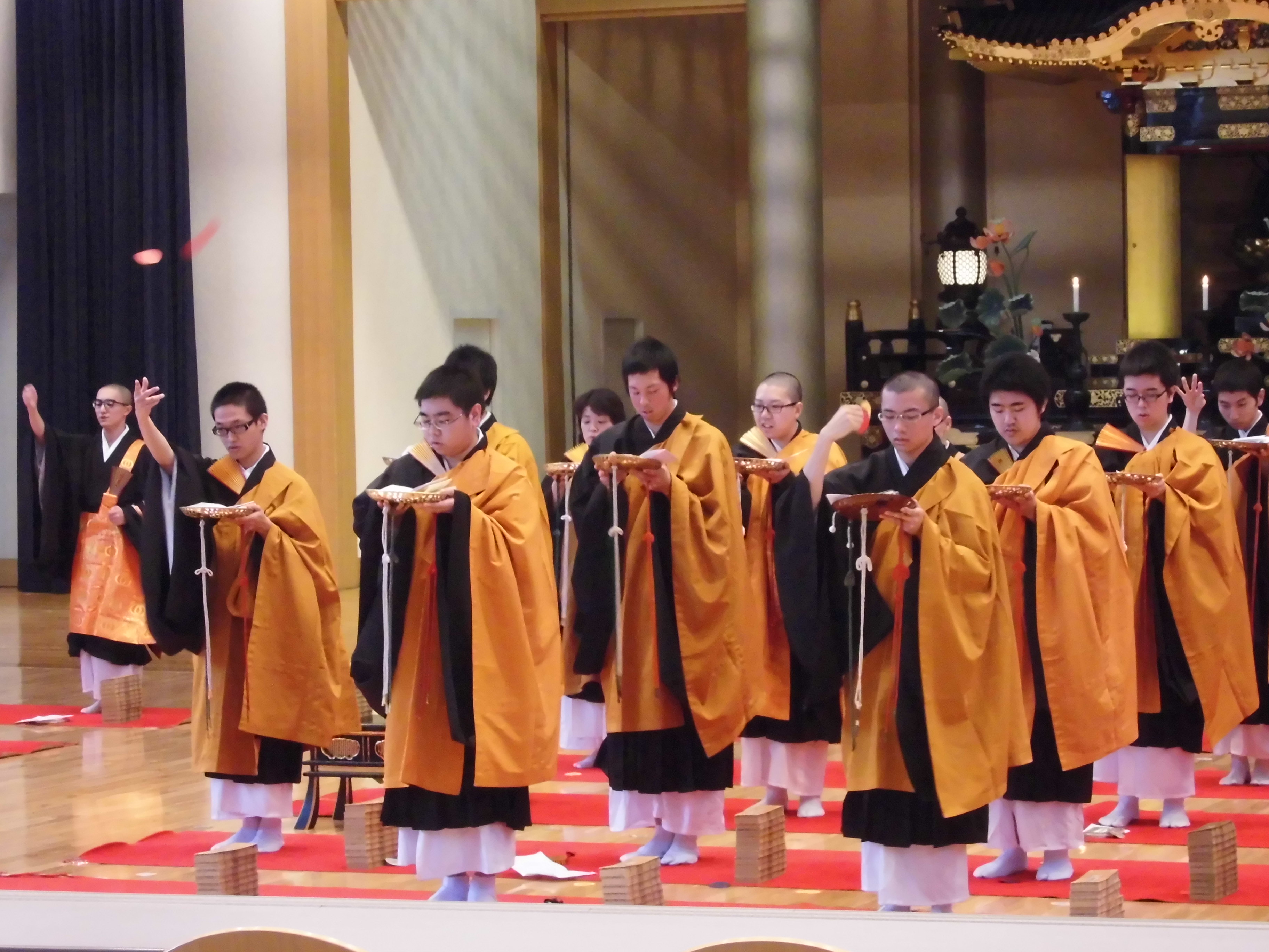 大般若転読会は、既に11月に水曜勤行において行われましたが、今回は成道会という釋尊の成道を讃えることに加えて、豊山学生会の一年間の活動の仕上げの意味含めてぜひ勤修したいという学生達の強い希望により行われました。