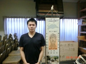 ★お砂踏み企画担当・3年生の腰塚くんと八十八番札所のお軸。