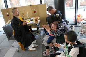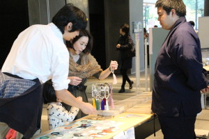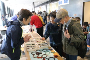 最近、腕輪念珠をされている方が多くみられます。これを手作りして頂こうと考え「念珠作り体験」を企画しました。自分のサイズに合ったものを作れるので、小さな子供から男性まで多くの方が体験して下いました。作ったお念珠には、お坊さんが加持をしてお香の香りをつけてお持ち帰りいただきました。また併設した観音市ではプロの作った念珠各種を販売しました。