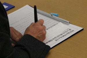 仏教体験の定番ともいえる「写経・写仏」では、教室に仏様を安置し道場をつくり、お作法の通りに写経と写仏の体験をしていただきました。