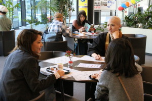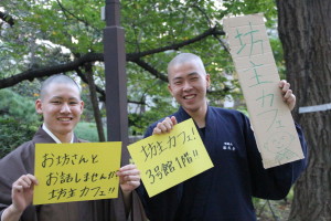 いつもとは違った大学内でゆっくりと過ごして頂きたいと、「坊主カフェ」を展開しました。法衣を着けたお坊さんとして学生が来場者と話をします。他学科の学生や一般の来場者にとって通常では味わうことができないと、長い時間話し込む姿もあり、和やかな風景がみられました。仏教伝来の国の紹介をかねて、インド・中国・日本の味をご賞味頂きました。