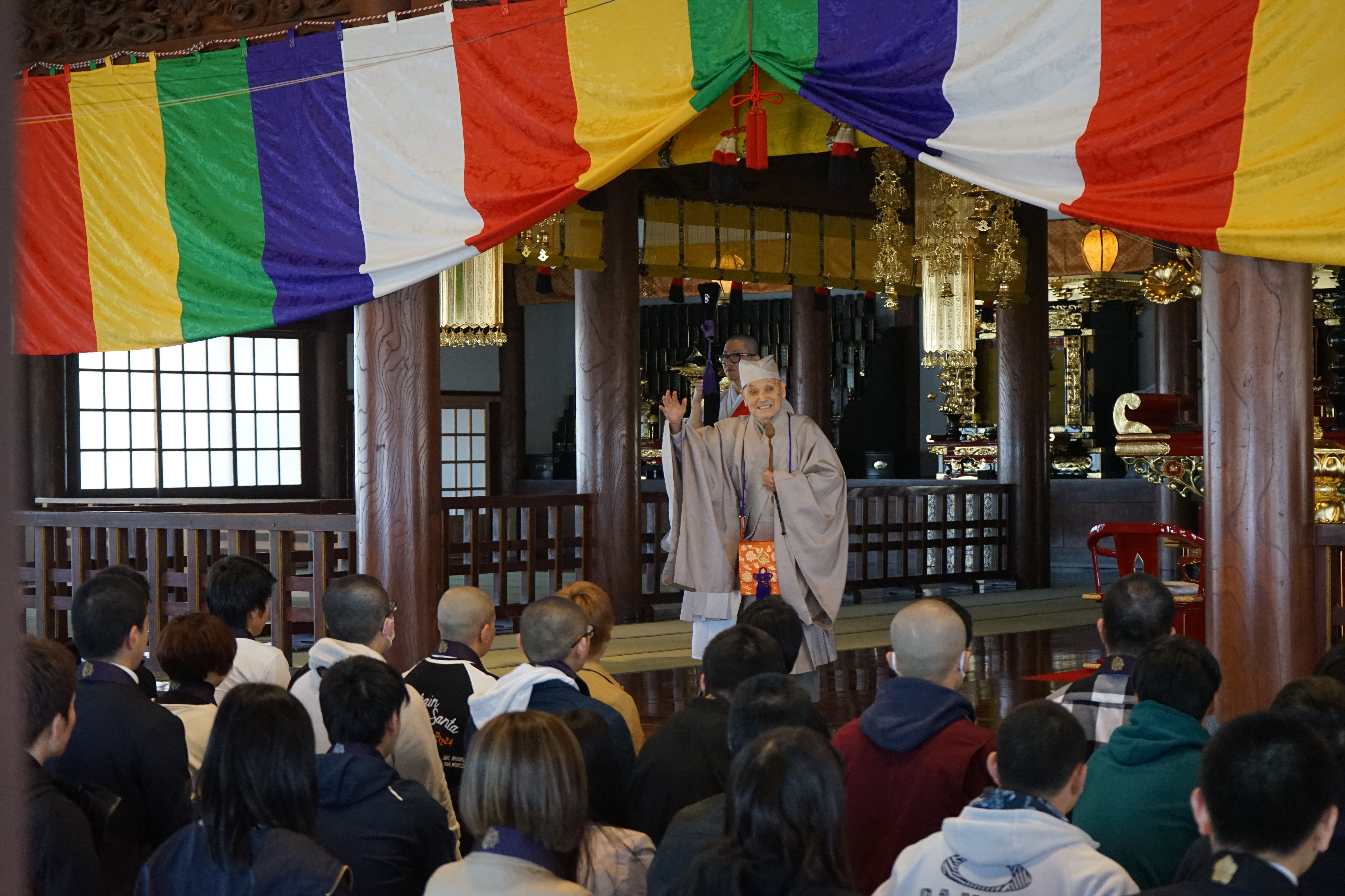 今年で100歳になられる74代の他阿真円上人から入学のお祝いのお言葉と上人も大正大学の出身ということで、当時のお話しを伺いました。