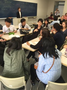 5月25日水曜日、「日本人の生活と仏教B」の授業の時間に、来日中のウエスタンミシガン大学の学生達15人を招き、国際教養コース学生達との合同授業が開催されました。