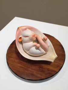 作品は木彫りで、着色には日本画の岩絵具を使用されるとのことです。