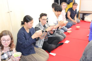 ここでも日本人学生は一生懸命お茶の頂き方を英語とジェスチャーで解説しました。