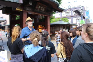 道中は日本人学生の解説で神社仏閣を参拝し、商店街を歩きました。