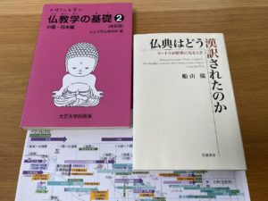 衰える記憶力を補うため、経典の漢文翻訳の歴史を年表にまとめて各時代の人物相関などに想いを馳せてみたり、関連書籍でイメージを具体化し、更なる理解に努めています。