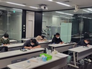 そして、今回新たな試みとして、実際に仏画を描いてみるという制作実習を2週にわたって行いました。
