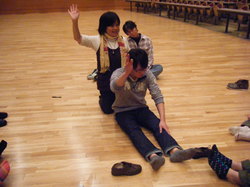 今回紹介する授業では、児童劇団としては国内の老舗とも言える「劇団風の子」でワークショップを担当している大森さんと大間さんを講師にお招きし、秋学期最後の大テーマ「動きと身体」に臨みました。