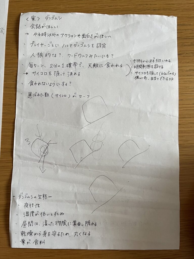 紙を切ったモノをカードと仮定し、何度もテストプレーを重ねます。