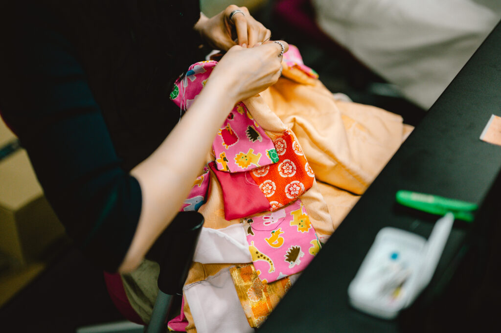 回収した古着は大学構内へと持ち帰り、デザインチームのリーダー・水谷ひなたが考案したオリジナルデザインに基づいた春夏秋冬デザインの古衣(こい)のぼりに仕立て、ミシンの得意なメンバーを中心に制作。