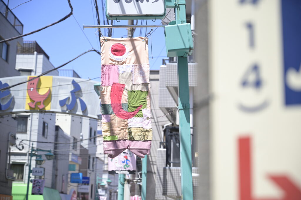 私たち大正大学表現学部街文化プランニングコース3年生は、2025年のゴールデンウィーク期間中、東京都北区の霜降銀座商店街に古着で制作した「古衣(こい)のぼり※」を、掲げるプロジェクトを実施しました。