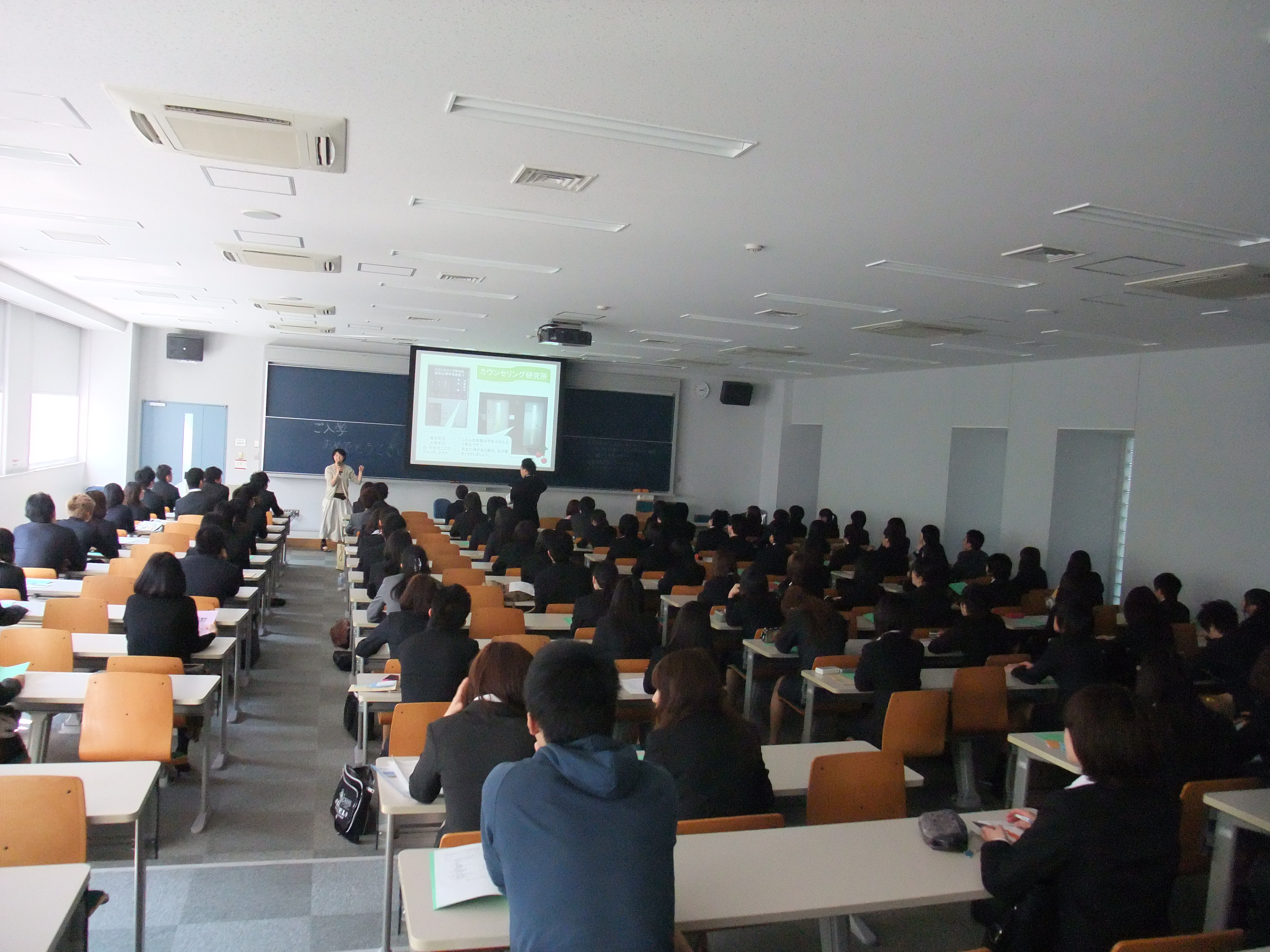 新入生ガイダンスでは、学科の先輩から新入生の皆さんに向けて学科紹介が行われました!