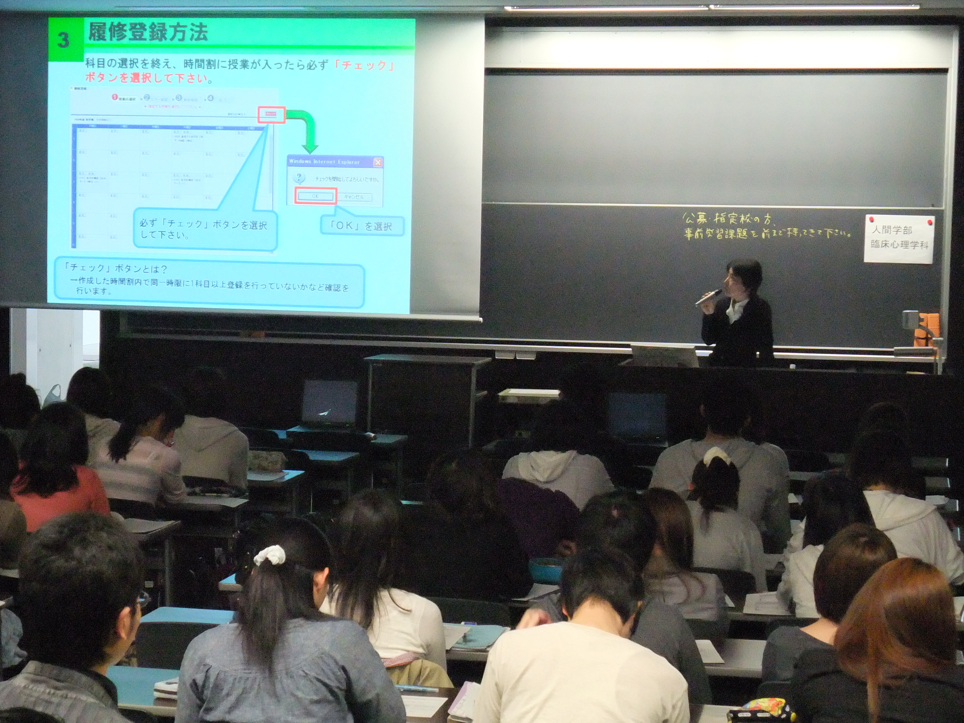 今日は新入生向けに履修登録の方法をガイダンスしました。