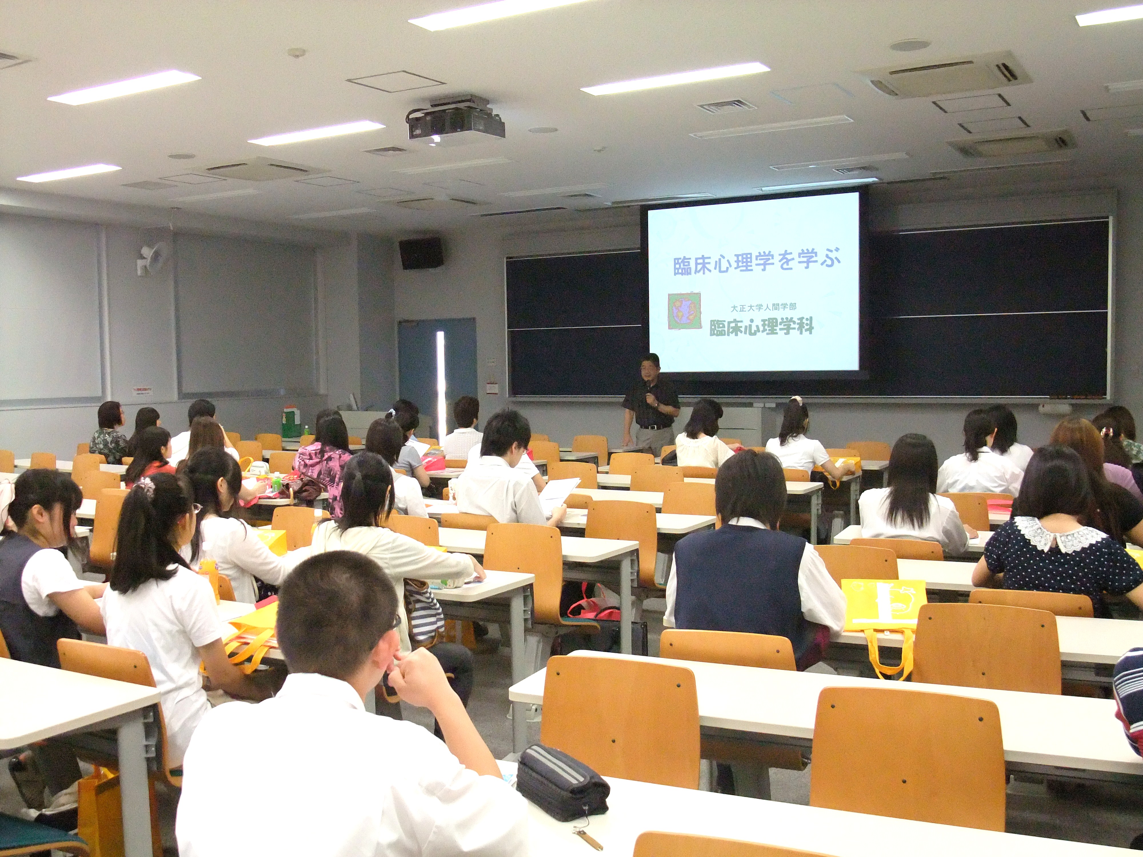 臨床心理学科では、午前に小林隆児先生、午後に栁田多美先生から、それぞれ学科紹介と模擬講義が行われました。