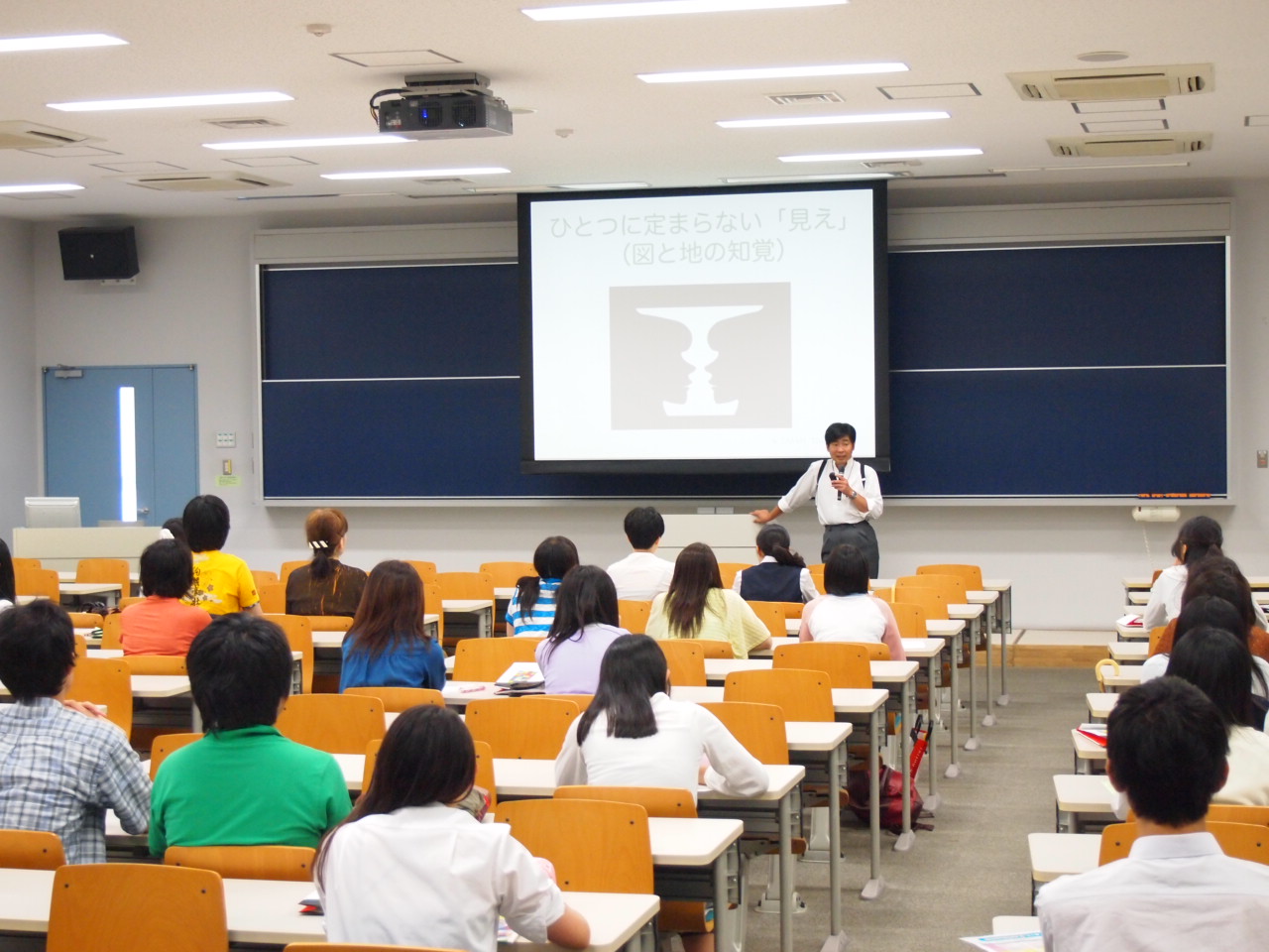 授業の中では人間のものの見方や感じ方について説明があり、受講生は錯視図形などを体験することにより、人間のものの見方や感じ方の不思議さについて体験しました。