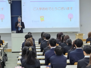 4月1日、入学式が行われました。学科長の歓迎の挨拶の後、早速ガイダンスが行われました。
