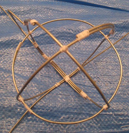 そうしてできたパーツを組み合わせ、金魚の胴体となる円形の部分と尾びれになる針金をT字型に組み合わせて接続。これでできた針金の立体に和紙を貼って金魚ねぷたの完成です。