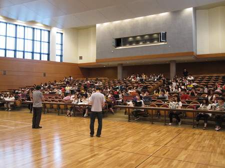 朝礼では、製作された「ねぷた」が審査され、豊島区長賞、学長賞、学部長賞が選ばれるとの発表。