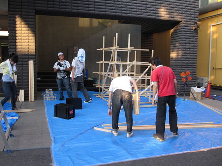 第一日目は、まず木組み作り、。「ねぷた」の土台作りです。