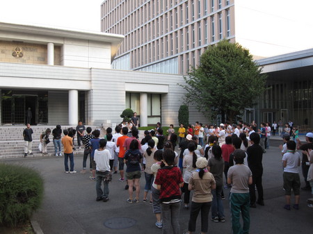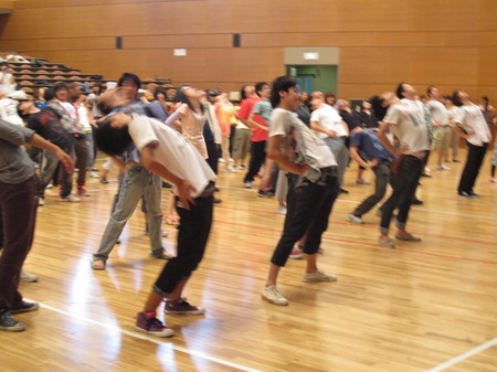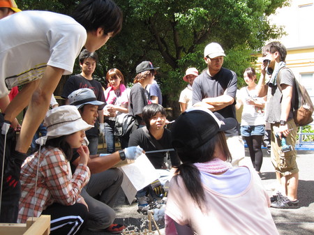 京都造形大の応援チームは今日夕方まで、親身のアドバイスや製作指導をしていただきました。まだまだ聞きたいことはあるのですが、感謝を込めてのお別れの会。大きな歓声が上がります。
