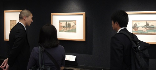 浮世絵を見学する日本史コースの中川仁喜先生