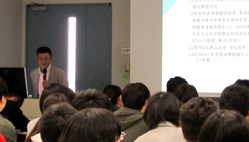 博物館へ行く前に当コースの加島勝先生のご講義がありました。先生はもと東京国立博物館の研究員です。