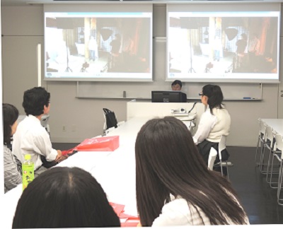 副島先生の模擬授業では、仏像の調査風景などをプロジェクターに映しながら研究の様子を説明しました。