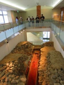 (京都大学総合博物館で久津川車塚古墳の石棺を見学)