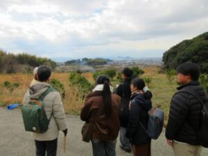 本や写真で何度も見てきた場所でも、実際に歩き、風や地面の起伏を感じることで理解の深さがまるで違う。現地に立って初めてわかる感覚があることを、身をもって体感した散策だった。(Y.K)