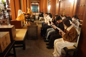 (早朝5時からの勤行)