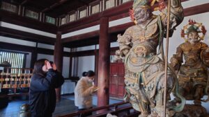 そして特別に、閉門後の静まり返った金堂の中で、本尊薬師三尊像を間近で拝ませていただきました。……その夜は興奮して寝付けませんでした。