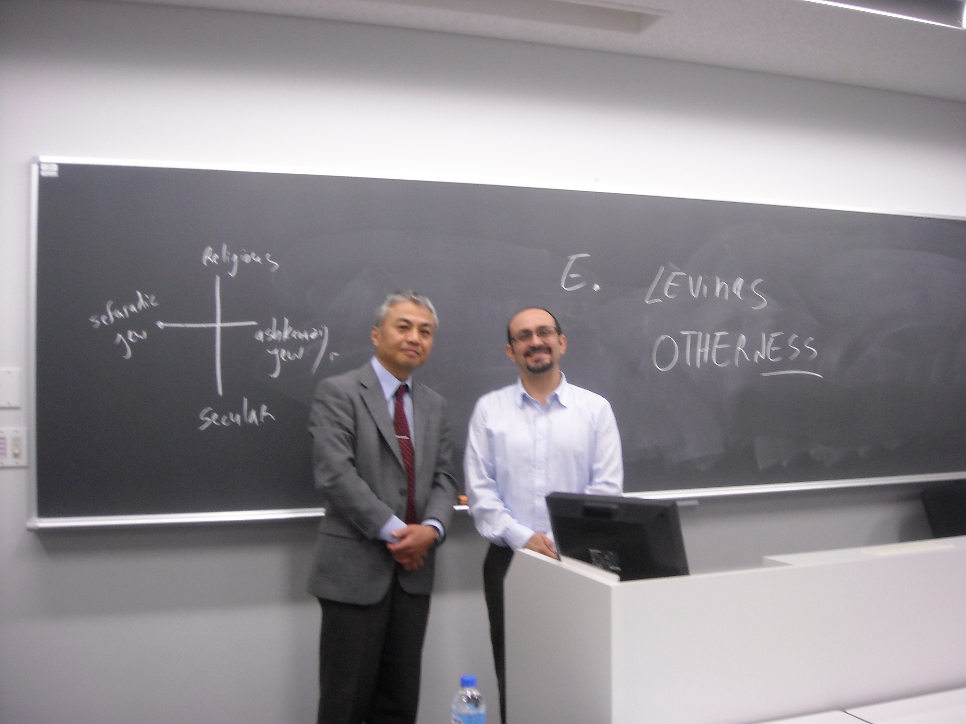 先日、星川先生の担当されている「異文化特別研究」の授業に、イスラエルから来日されているムアレム博士( Dr. Shlomy Mualem)が講演にいらしてくださいました。ムアレム博士はイスラエルのBar-Ilan Universityで比較文化を研究されていて、日本文化にも強い関心をお持ちです。